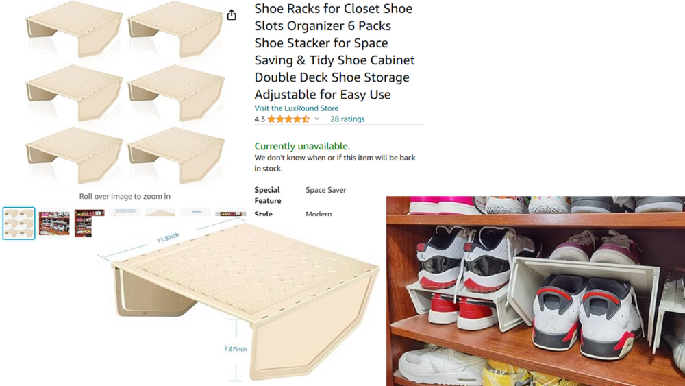 신발장 공간을 두배로 쓸 수 있게 공간을 분리해주는 선반입니다. 6개 한세트 입니다.