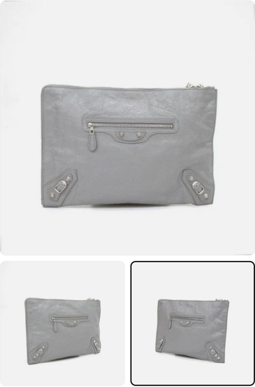 Option Width 34 cm / Height 23 cm / Depth 2 cm (13.4 × 9.1 × 0.8 in) Description - Color: Gray - Includes: Dust bag, Booklet - Lightweight and convenient design - Minimal signs of use, overall clean condition - Priced below retail - Gender: Women - Brand: BALENCIAGA - Product Name: Balenciaga Classic Motor Giant City Pouch Clutch Bag 541818• 1505• V• 528147 클러치 상자 (x) 더스트 백 있습니다.