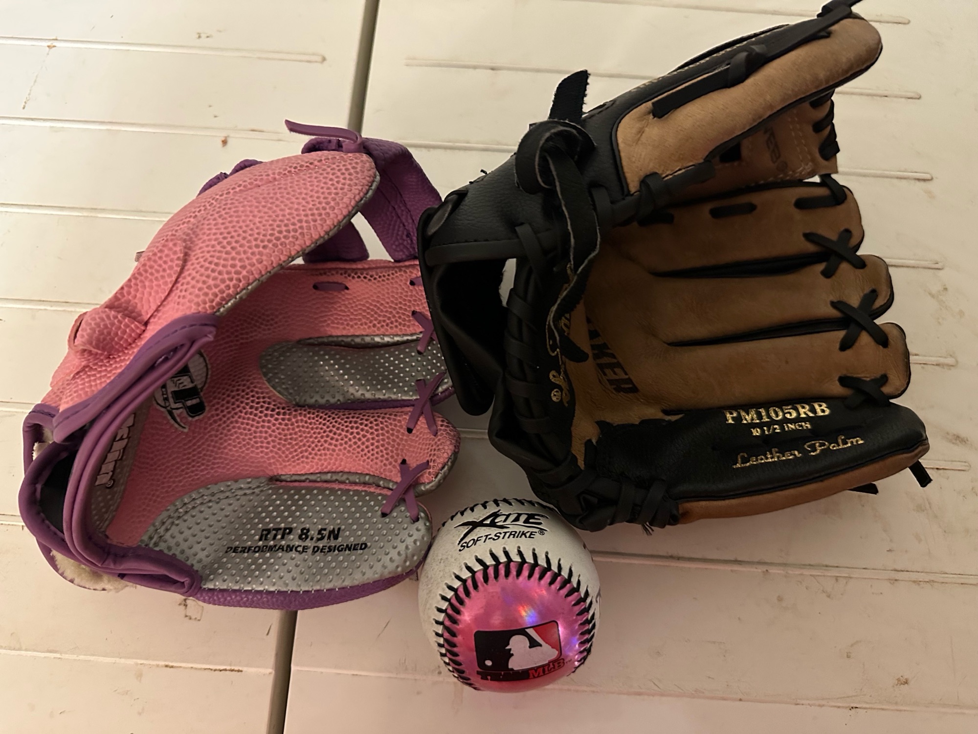 어린이용 야구글러브 2개 + 야구공 1개 세트 판매 아이들이 캐치볼 연습하거나 처음 야구 배울 때 딱 좋은 세트입니다! • Rawlings PM105RB (10.5인치) – 초등 저학년용 • Franklin RTP 8.5N (8.5인치) – 유아저학년용 • 야구공 1개 포함 • 두 글러브 모두 상태 매우 양호, 사용감 적고 바로 사용 가능합니다. • 뒷마당 캐치볼, 연습용으로 완벽한 구성입니다. 반품 및 환불 불가합니다.