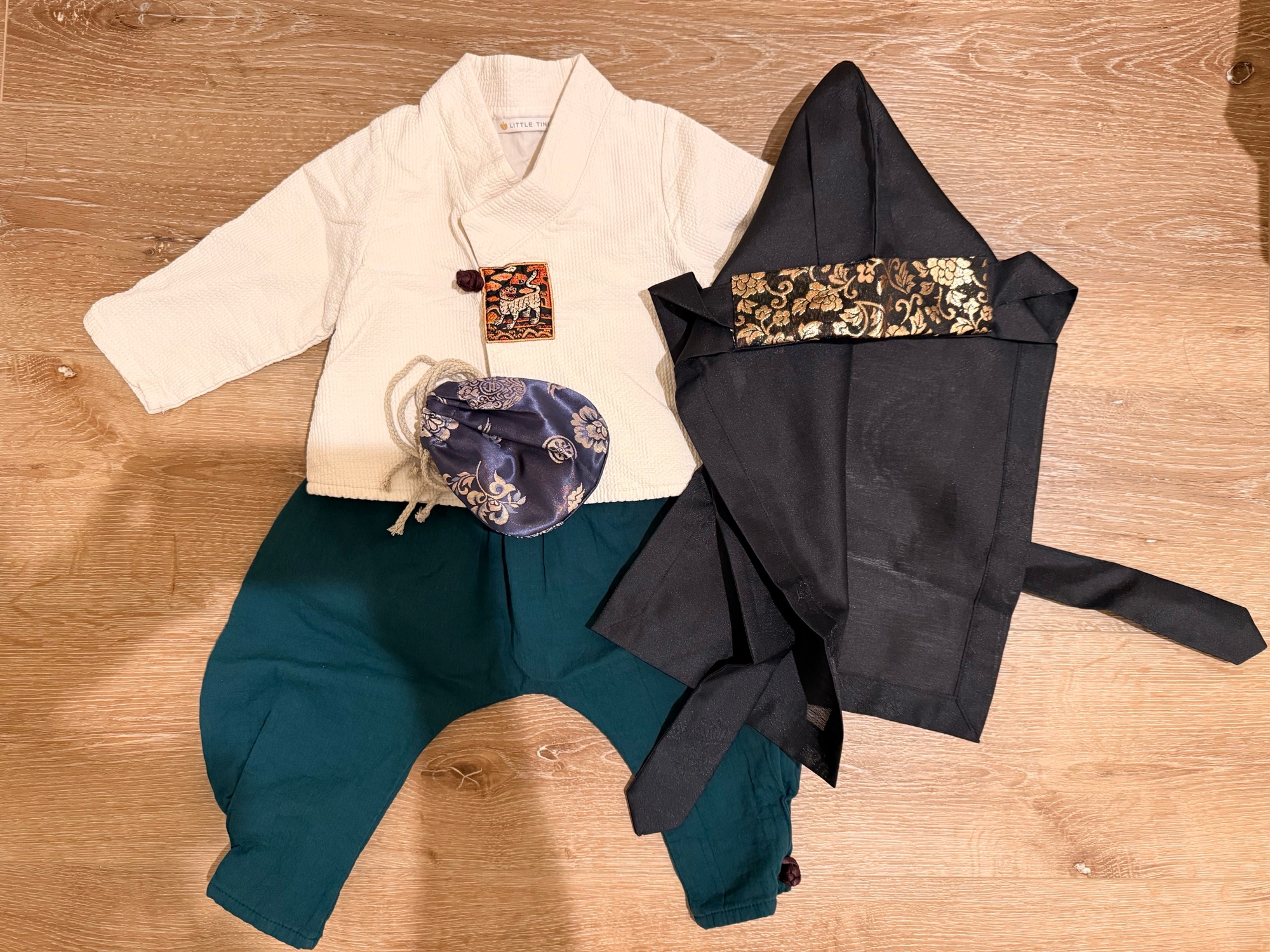 남자 아이 한복입니다. 사이즈가 넉넉한 편이라 저희 아이는 돌 이후에도 입었어요. 모자랑 복주머니도 함께 드립니다. Irvine pick up & cash only입니다.