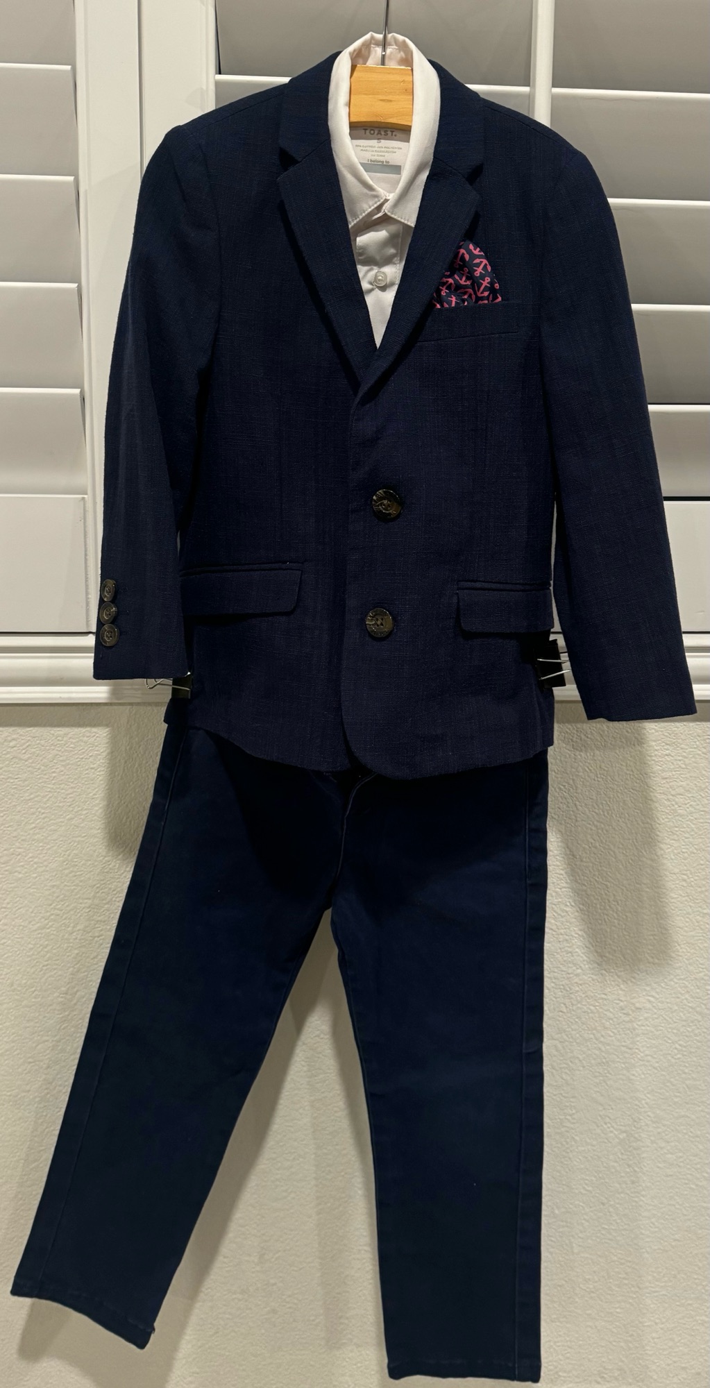 5T (4-5세 추천) 조금 여유 있게 입히면 더 오래 착용할수 있어요. Appaman 애퍼맨 네이비 자켓 Appaman 애퍼밴 네이비 팬츠 다른 브랜드 셔츠 2장 (화이트 + 네이비 도트) 애퍼맨 자켓 하나만 $118 예요~ 애퍼맨 팬츠는 세트는 아니어도, 함께 코디하면 멋스럽고 이뻐요. 너무 정장틱 하지 않으면서도 입히면 세련되고 멋짐 폭발!!! 아이 생일이나 중요한 행사때 몇번 착용한거라, 사용감은 살짝 있어도 깨끗한 편이예요! 입히면 내 아들 너무 멋지다 하실거예요^^ Cash only🧡 노쓰리지, 갤러리아 마켓 앞에서 만나면 좋아요. (그 외 장소 타협 가능)
