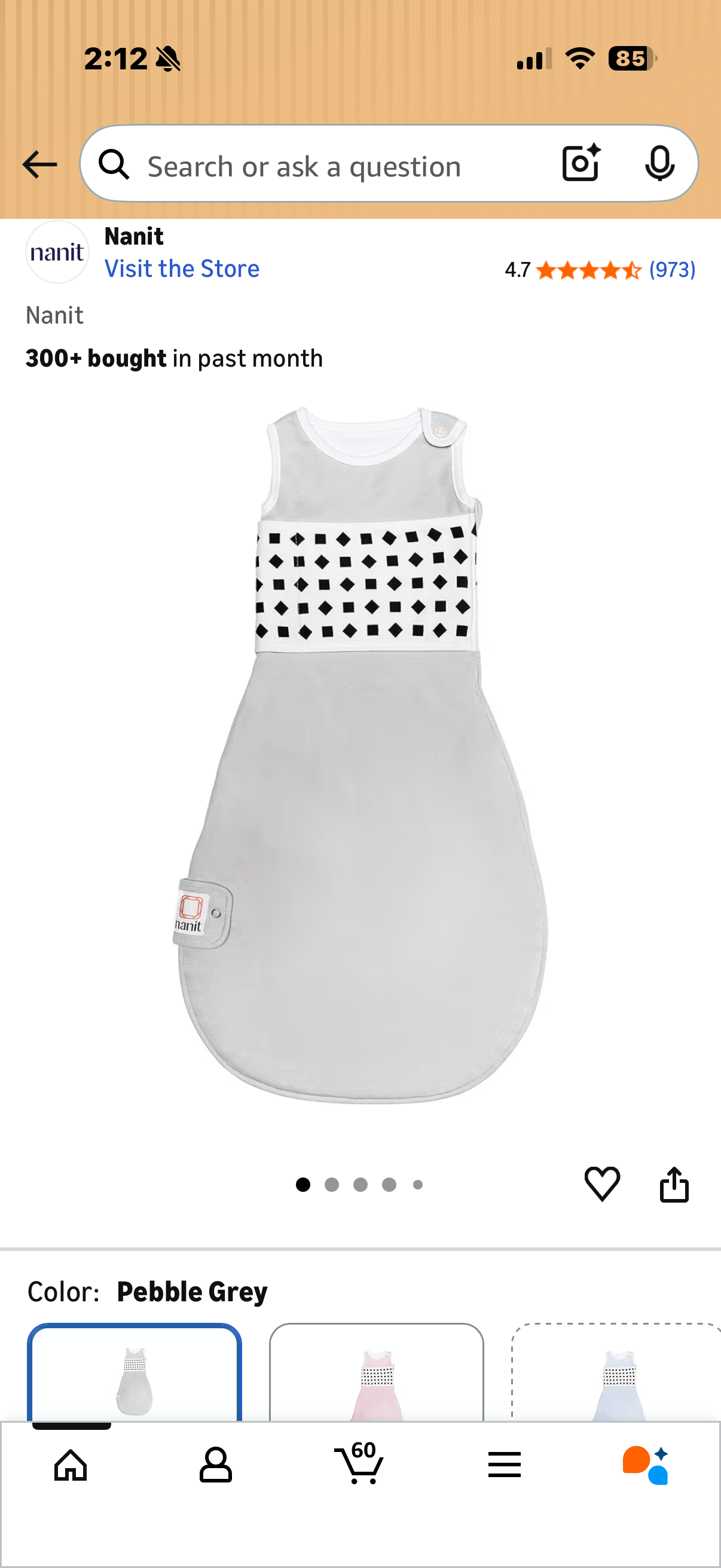 새 상품 Nanit 아기 수면조끼2장 (sensor감지)Pebble Grey