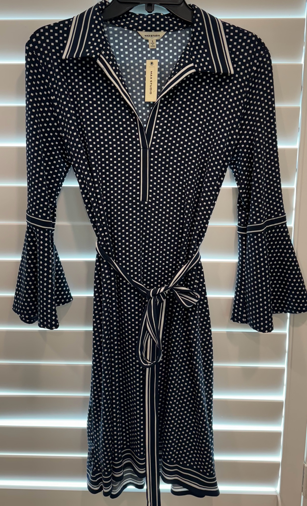 새상품💎막스스튜디오. 원피스 스몰 네이비에 배색과 패턴이 들어가 고급분위기예요 신축성 좋아 편해요 한번도 입지 않은 새상품이예요 정가는 $98이예요. 착하게 데려가세요 Cash only 노스리지 갤러리아 마켓외 다양한 장소 타협 가능❤️