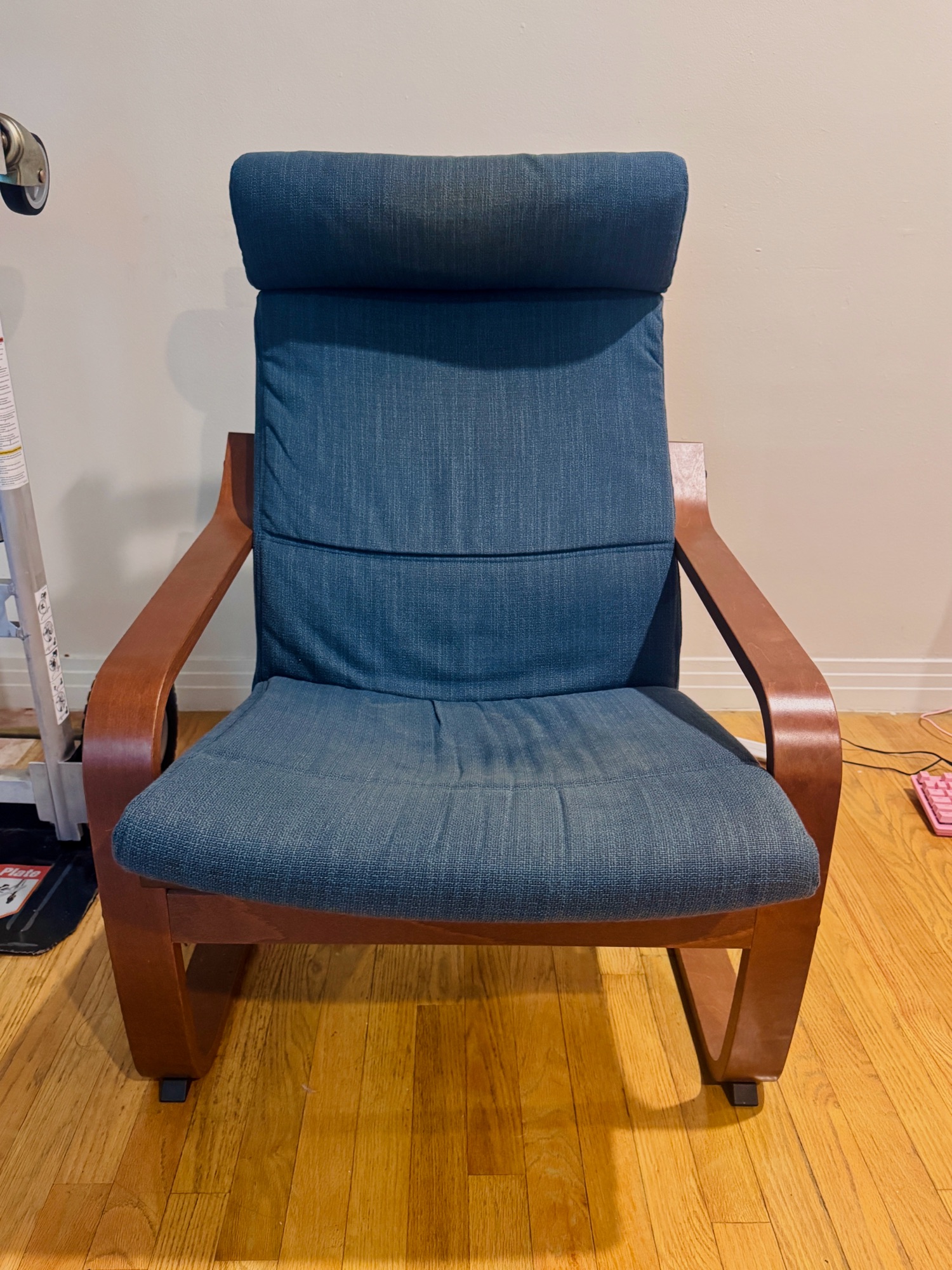 이케아 베스트 셀러 포엥(POÄNG) 암체어 입니다. 현제 이케아 공홈에서 동일 모델/컬러 새 상품 $249에 판매 되고 있습니다. (스샷 참조) 짙은 브라운 색의 나무가 고급스러운 느낌을 줍니다. 목 받침이 쿠션이 있어서 목을 편안하게 받쳐줍니다. 착석감도 아주 편해서 왜 장시간 이케아 배스트 셀러로 뽑히고 있는지 알게 해 주는 상품 입니다. 세번째 사진에 보시면 엉덩이 쿠션쪽에 얼룩이 있는데, 수상한(?) 흔적이 아니라, 작년에 비 맞고 물 뭍은 외투를 안 말리고 올려뒀더니 생겼습니다 ㅠㅠ 가장 마지막 사진을 보시면 아시겠지만 쿠션은 이케아나 아마존에서 호환되는 제품이 많으니 교체 가능 하십니다. 간편한 이사를 위해 판매 합니다. 안 팔리면 그냥 제가 가져가서 쓰려구요… 그정도로 편합니다 😉 🔆 스튜디오 시티 / 벨리 지역 입니다. 🔆 제 차가 작은 관계로 픽업 하셔야 합니다.