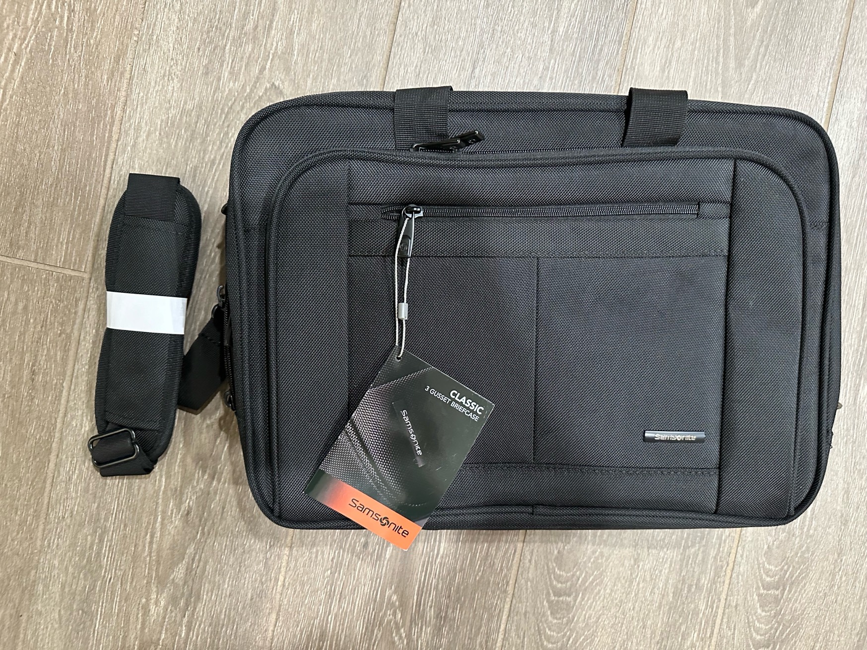 Samsonite Classic Business Briefcase 판매 천으로 된 가방이며 새상품입니다. 옆면 에 지퍼가 두개가 있고 뒷면에 지퍼가 한개 더 있습니다. 컴퓨터 랩탑 및 여러 서류가 들어갈수 있는 가방입니다. 반품 환불 안됩니다.