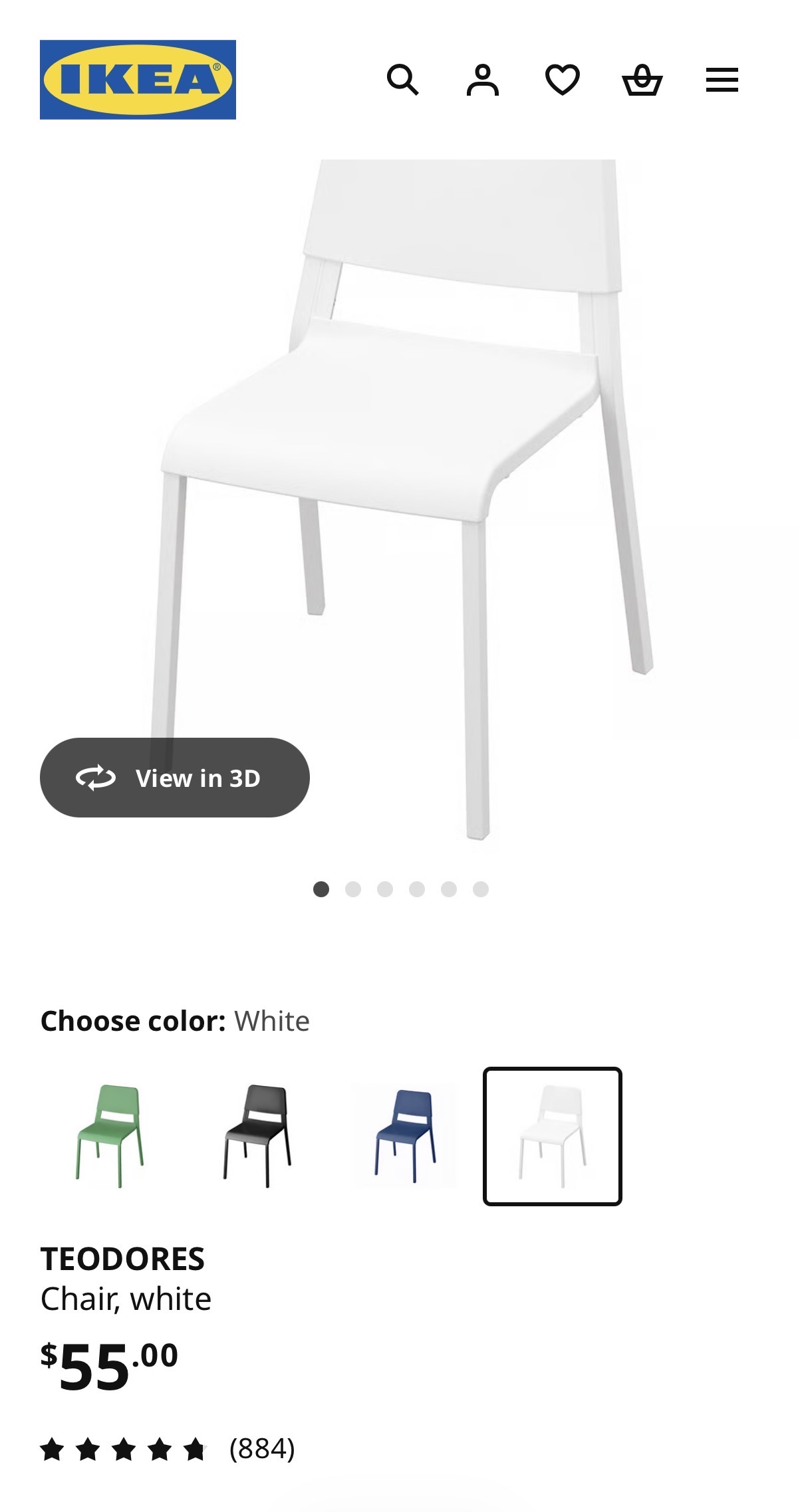 이케아 TEODORES 화이트 의자 20불에 판매합니다! (세전 55불) 총 2개 있습니다