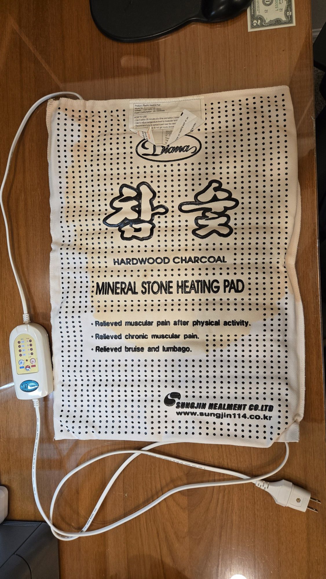 참숯 Mineral Stone Heating Pad입니다. 사이즈: 15"×20" 따뜻하게 온도 조절해서 피로감 푸는데 좋아요.