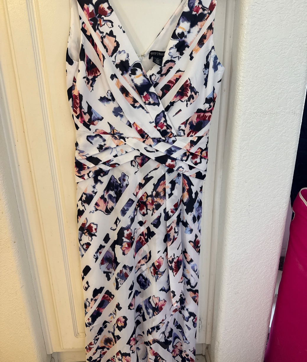 라벨만 떼어 졌고 새옷이에요 사 놓고 못입고 이제는 작아서 못입어요 원단 좋고 너무 예뻐요 앞쪽은 무릎 살짝 덮고요 뒷 쪽이 살짝 긴 드레스에요