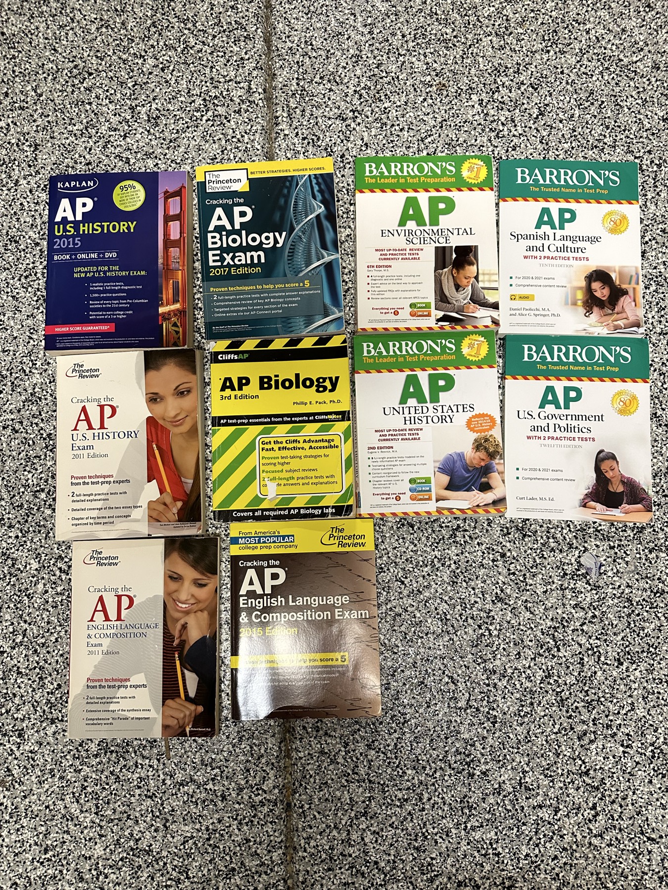 AP history 27l AP biology 2Zl AP environmental Science AP US History AP Spanish AP US government AP English Language and composition 2권 총 10권 판매합니다. 낱개는 판매 안합니다. 반품 환불 안됩니다.
