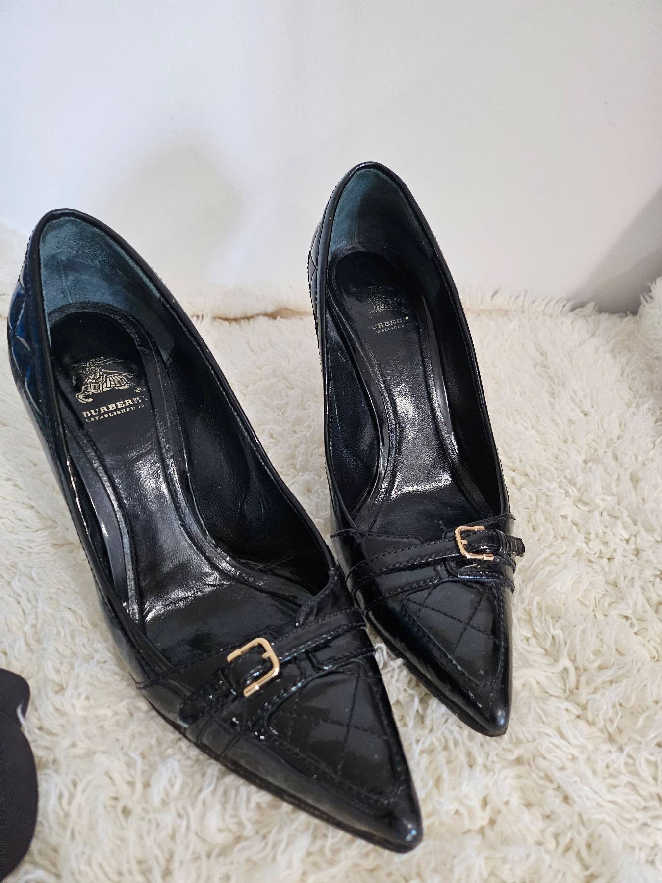 사진 속 제품은 버버리(Burberry)의 블랙 페이턴트 퀼팅 가죽 펌프스 힐입니다. 이제 높은거 신기가 힘들어서 네 놓습니다
