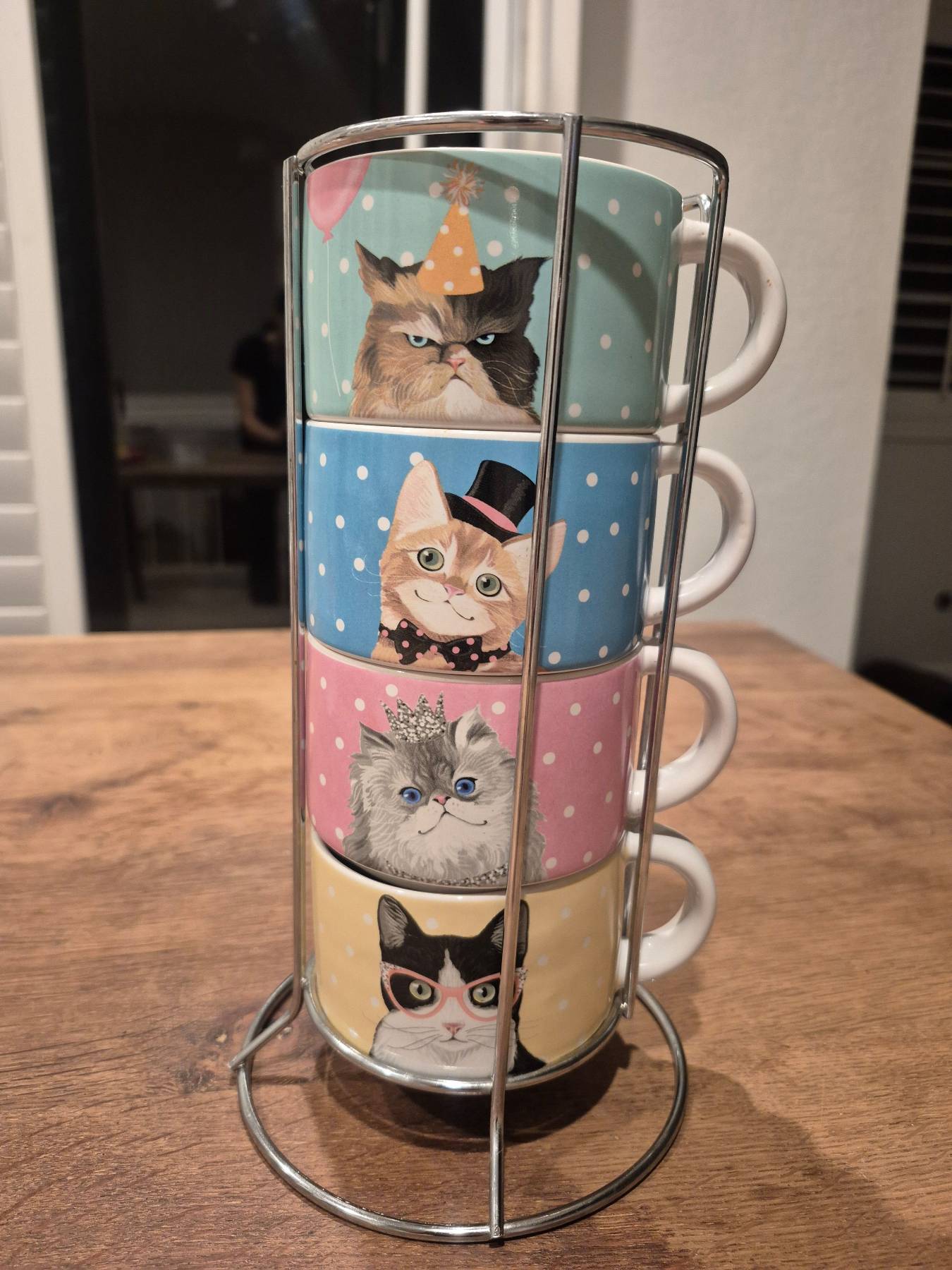 1. 고양이 머그컵 4개 세트: 15불 2. 장미 커피잔 2개 세트: 10불 3. 화이트 접시(13.5인치) 2개: 5불 4. 유리 샐러드 또는 파스타 볼 2개: 5불 5. 접시 9개 세트: 5불