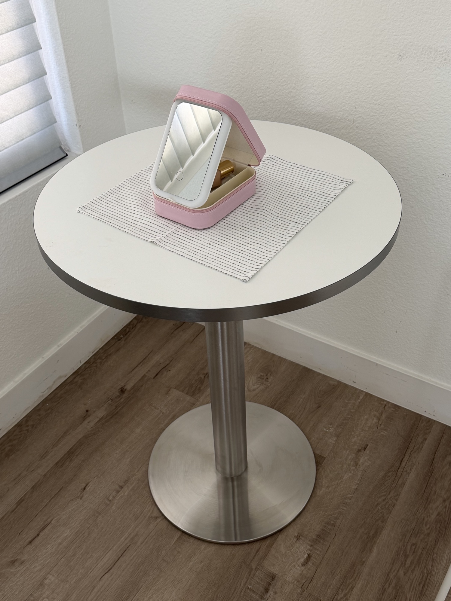 사용 기간 6개월 미만이고, 상태 정말 좋아서 선물해도 될 정도로 깨끗합니다. 상판: 화이트 무광 LPM 소재 스크래치에 강하고 관리가 쉬워서 실사용하기 편해요. 튼튼한 메탈 페디스탈 다리 미니멀한 디자인이라 작은 공간, 다이닝 공간, 홈오피스 어디에 두어도 잘 어울립니다. 상태 안내 자세히 보면 아주 미세한 펜 자국처럼 보이는 부분이 살짝 있는데 거의 티 나지 않는 수준입니다. 전체적으로 매우 깔끔하고 사용감 거의 없습니다. 픽업 온리