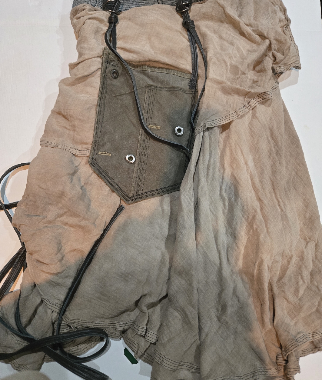 군용복천과 가죽이 덧데어진 랩스커트