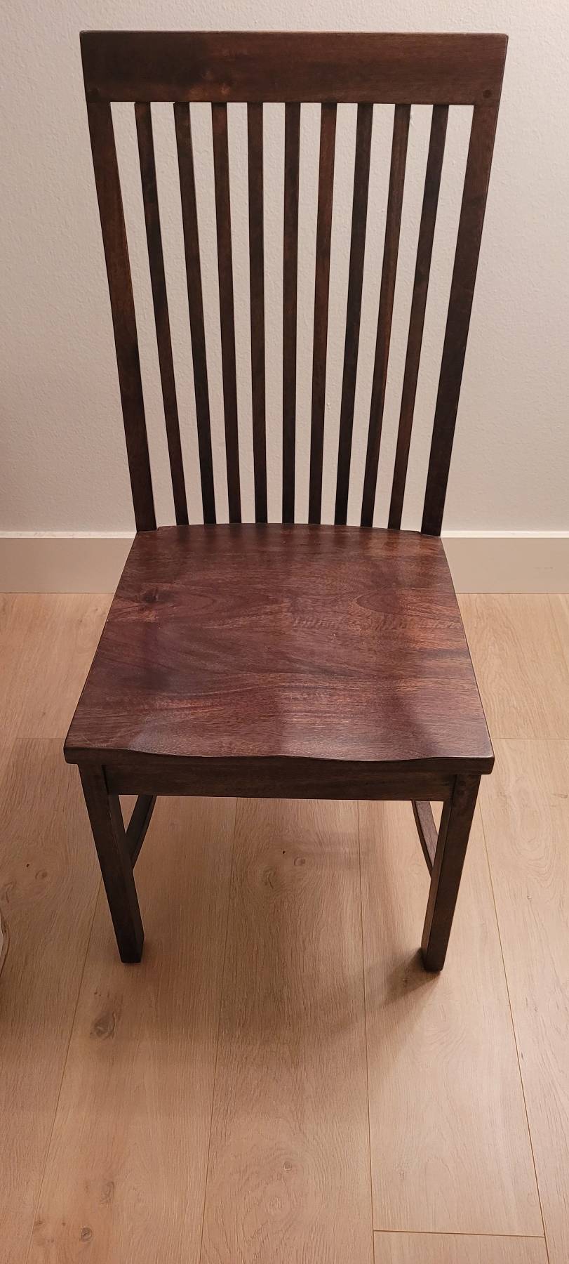 고급나무의자 입니다. 튼튼한 재질이고 앉는곳에 홈이 있어서 오래앉아 있어도 편합니다. 2 개 있습니다. 개당 $150 에 구입 했습니다. 개당 $30 에 내놓습니다.