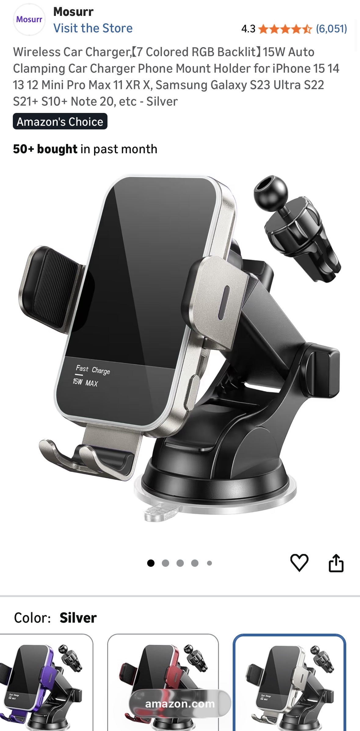 자동차 휴대폰 거치대 + 무선 충전 되는 제품입니다! 박스도 안열어본 새상품입니다! 아마존에서 구매했고 디자인 진짜 이뻐서 구매했는데 다른거 선물받아서 판매합니다! 가격은 $31.89 (텍스 미포함) 절반 가격으로 팔아요🥲 제품은 silver color입니다! https://www.amazon.com/Wireless-Charger-Colored-Backlit%E3%80%91-Clamping/dp/B0CB3T8R7C?pd_rd_w=KUxqd&content-id=amzn1.sym.2d032569-b0bd-420a-ad3a-7e5c8744bf78&pf_rd_p=2d032569-b0bd-420a-ad3a-7e5c8744bf78&pf_rd_r=743YXNNQNB0ECMKKYT1K&pd_rd_wg=BB7ky&pd_rd_r=649bd7aa-9d95-43de-bd97-91f832296b80&pd_rd_i=B0CB3T8R7C&psc=1&ref_=pd_basp_m_rpt_ba_s_2_scp