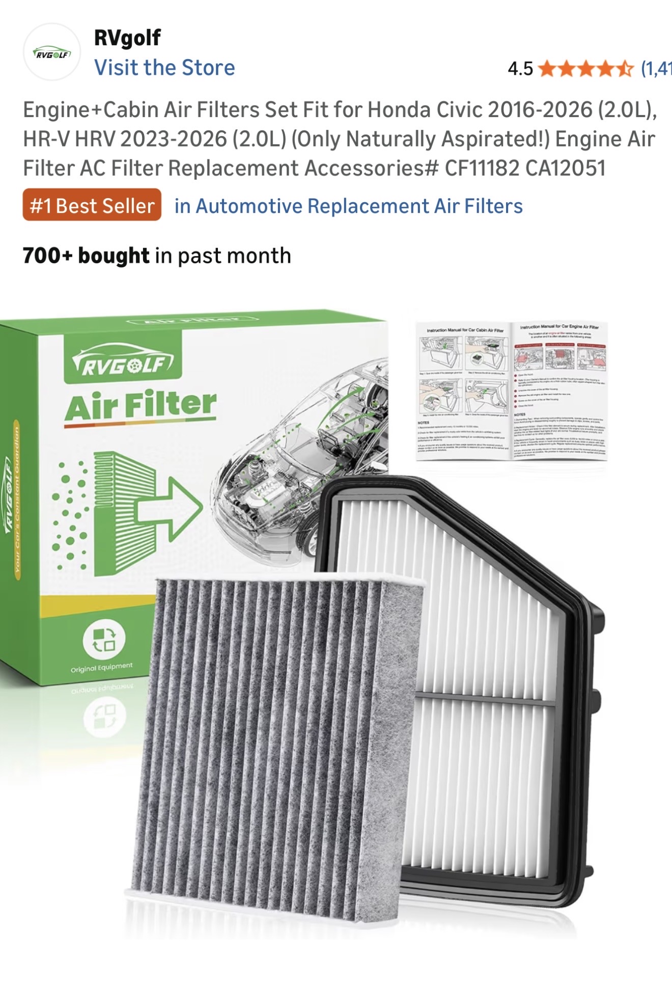 Honda civic 에어필터 세트