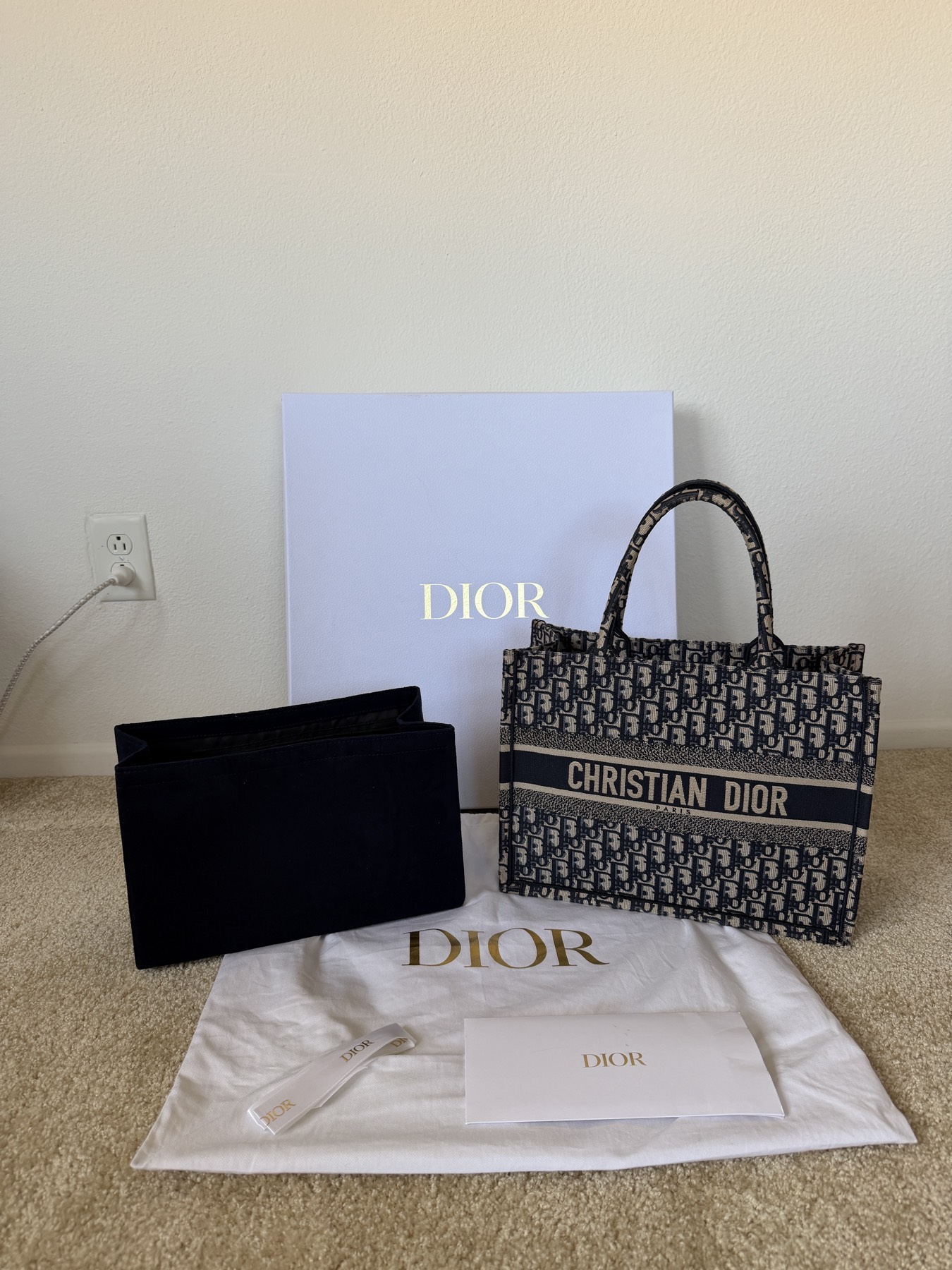 2022년 한국 롯데백화점에서 구매한 디올 북토트 가방입니다~ 사용횟수는 5회 미만이고 상태 매우 좋습니다 오리지널 박스, 더스트백 가지고 있고 같이 사용했던 이너백도 함께 드릴게요 :) 13인치 맥북 또는 아이패드 들어갈 넉넉한 공간이고 여행 가방으로 몇번 사용한게 다입니다. 100% 정품 맞으니 믿고 구매하셔도 되고 원하시면 영수증은 개인정보 가리고 보여드릴게요! 픽업 위치 확인하시고 궁금한거 있으시면 언제든지 쳇 주세용! Final price + 캐쉬온리입니다~