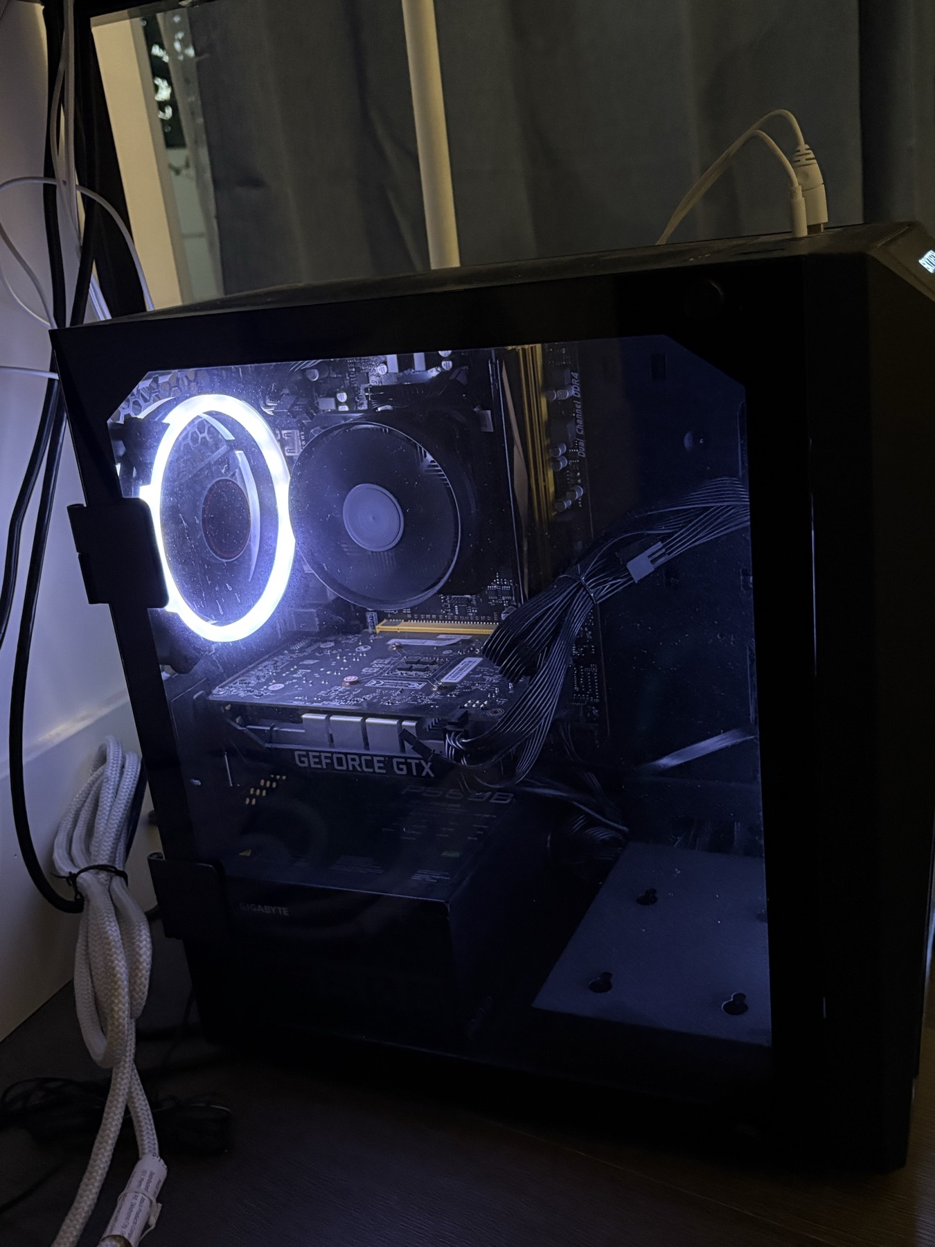 Specs: • CPU: AMD Ryzen 5 2600 six-core • GPU: NVIDIA GeForce GTX 1650 • RAM: 8GB • Storage: 466GB SSD (or SSD + HDD) • Motherboard: A320MH • RGB Fans + Tempered Glass Case 깨끗하게 사용했습니다 ㅎㅎ 주로 오버워치 게임 하는데에 사용했어요! 모니터와 함께 구매하시면 더 할인해드리겠습니다!
