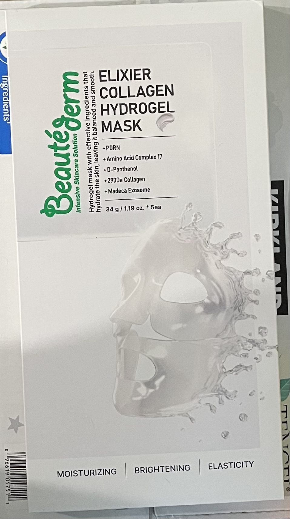 보떼덤 엘리시어 콜라겐 하이드로셀 마스크 1박스 팔아요. 보떼덤에서 이번에 새로 만든 마스크팩이에요. 더멀매트릭스나 바이오댄스에서 만든거 같은 하이드로겔 마스크라 진정에도 좋고 쓰고나면 얼굴에 광이 돌아요. 30불에 가져가세요. 박스안에 5개 들어있어요.