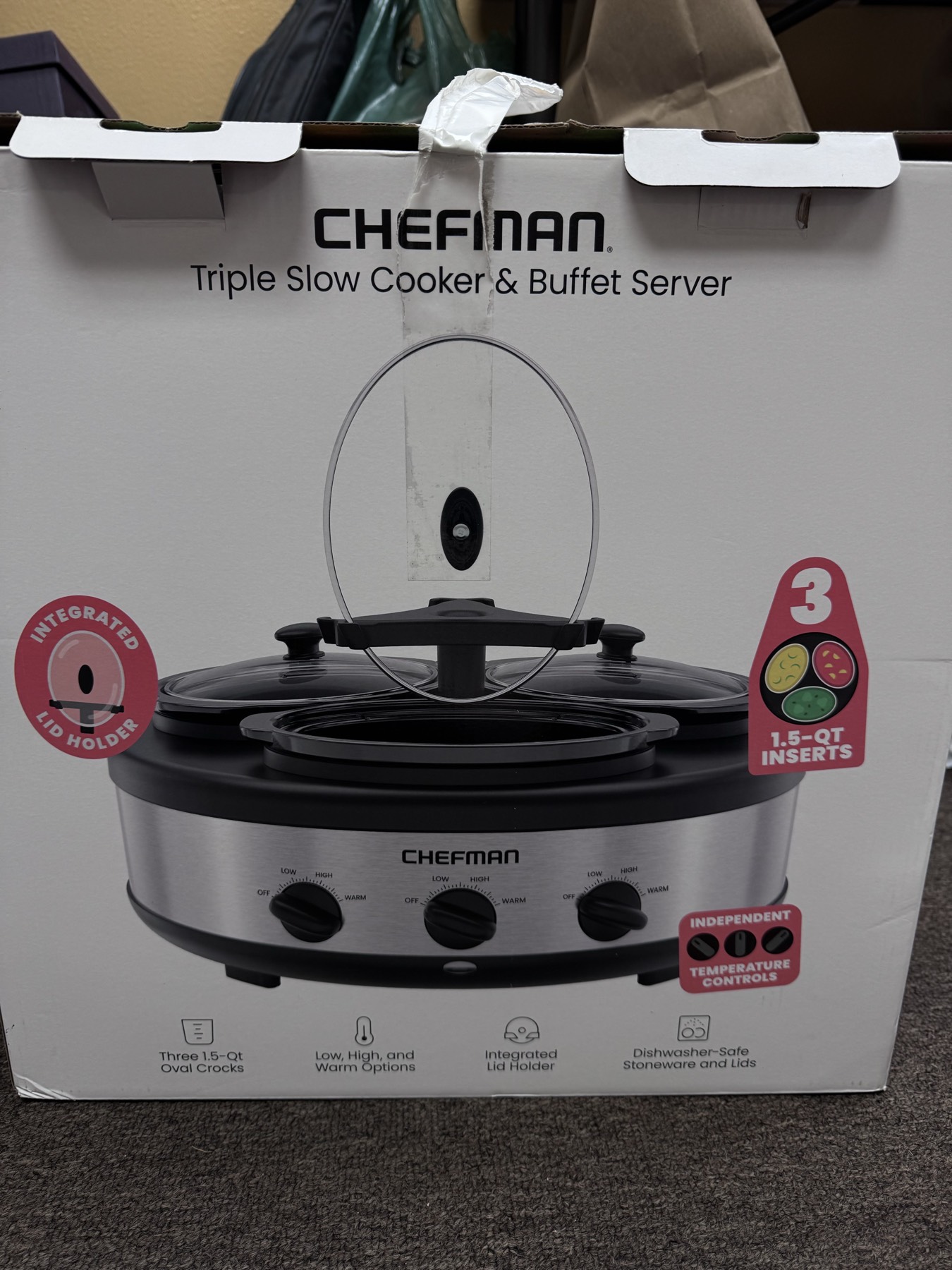 3가지를 동시에 따뜻하게 데울 수 있는 슬로쿠커입니다. 사용하지 않았습니다. 70불 이상 하는 것으로 알고 있는데 40불에 드리겠습니다.