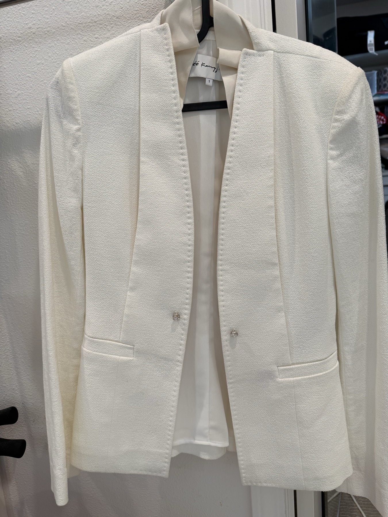 오브제 고급쟈켓 입니다. 1 사이즈로 날씬55까지 가능하실것 같아요. 거의 못입은 옷입니다. 오브제 디테일은 아시는 분은 아실꺼에요 소매부분도 이뻐요. 약간 스판끼도 있는 재질입니다. 저렴히 가져가셔서 이뿌게 입으세요~~~