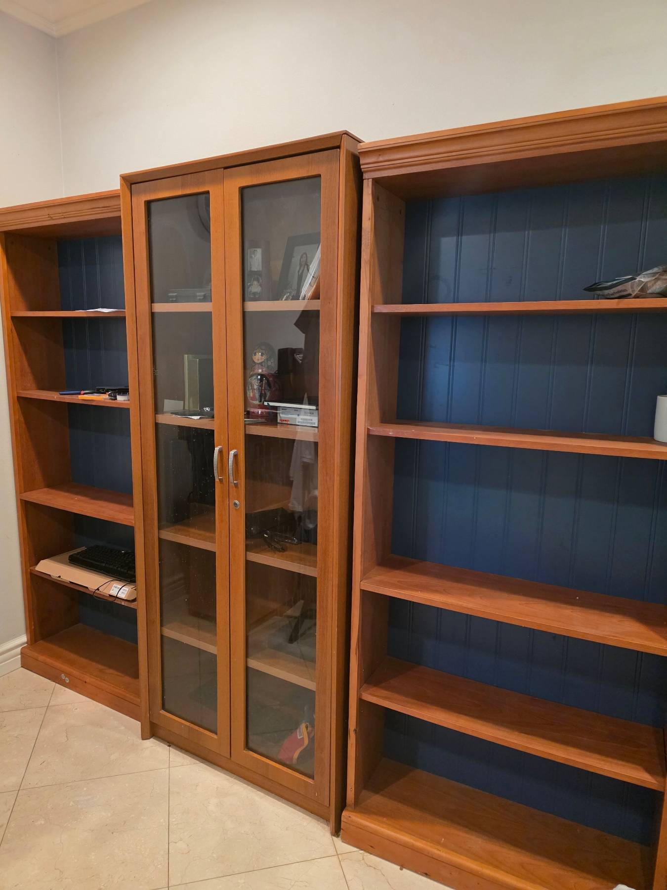 한국에서 가지고온 튼튼하고 예쁜 책장입니다 이사관계로 내어 놓아요 한국에선 비싸게 주고 산거라 튼튼하고 유리 장식장도 유용하게 쓰일겁니다