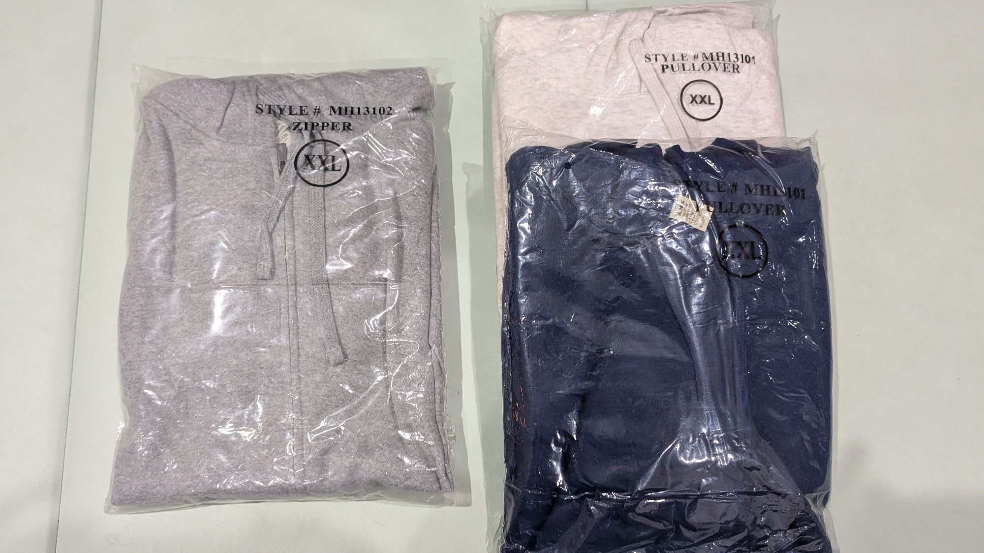 가을 겨울용 미개봉 (기모)후디 입니다. Zip up 후디 - 은회색 1개 후디 - 은색 1개, 네이비 1개 실사이즈 XL-XXL 사이정도. 3개 묶음 15불. 한타 픽업.