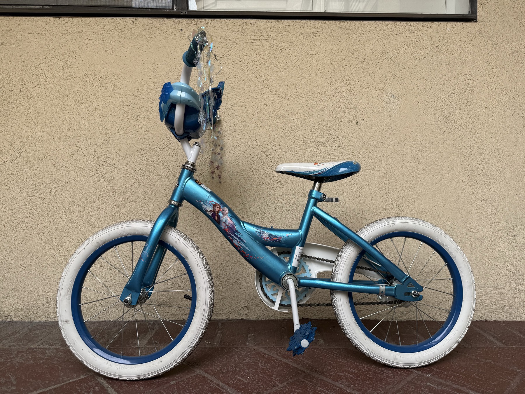 겨울왕국 두발 자전거입니다. 5-7세가 타기 적당할것 같습니다.
