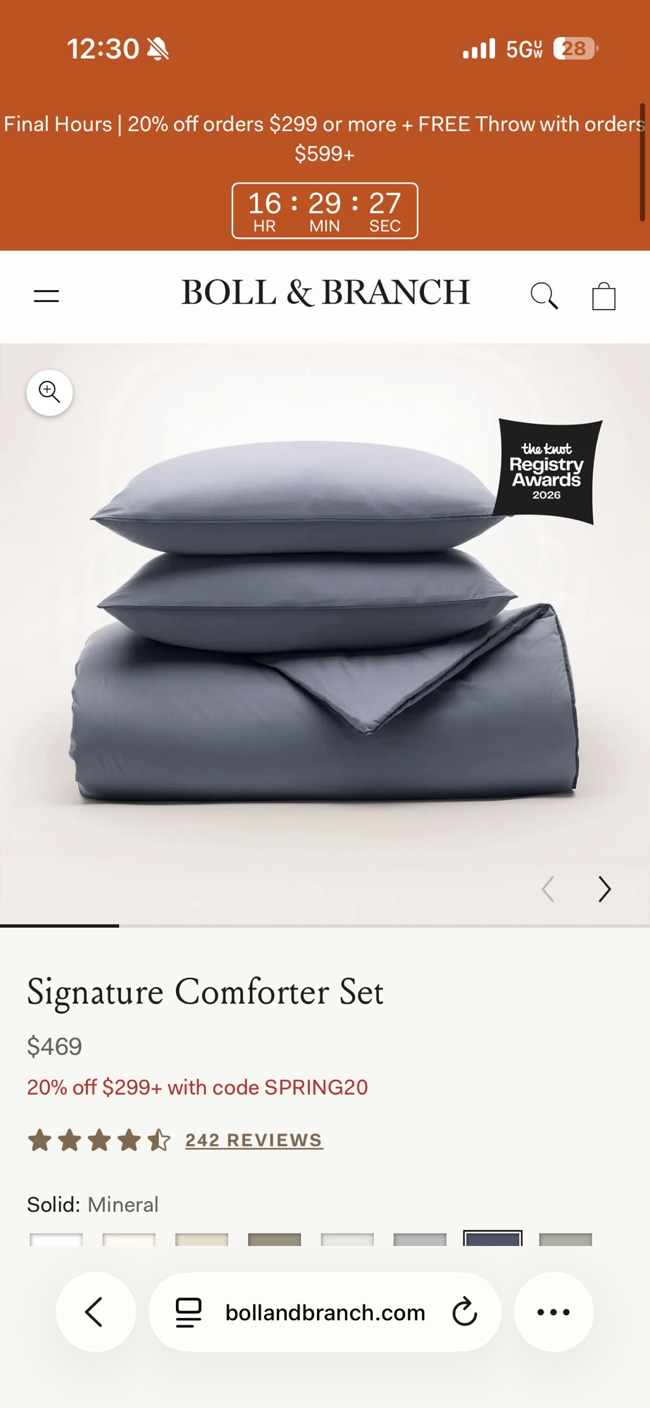 (새것)Boll&Branch 100%올가닉 퀸 사이즈 일체형 이불+베개커버