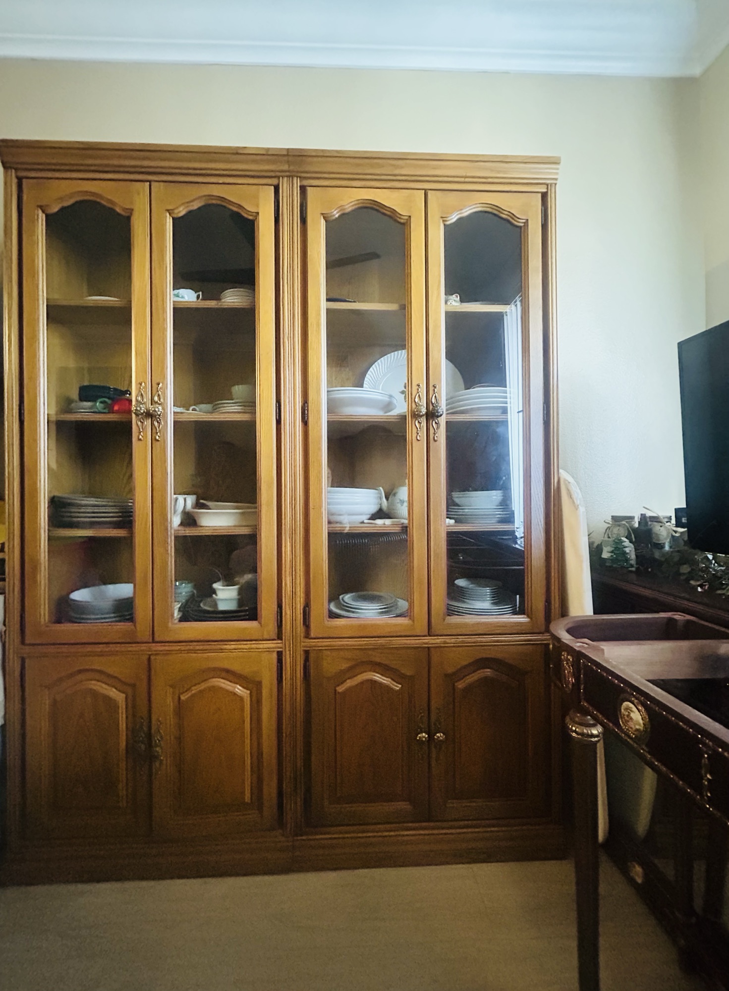원목 장식장이고 두개 분리됩니다 아주 튼튼한 원목입니다 무빙세일로 가격협의하에 저렴하게 드릴예정입니다 플러튼지역 픽업온리 ,소파 피아노 다른가구와 장식장안에 있는 여러가지 수입 그릇 접시세트 등 판매할 예정이니 문의주세요