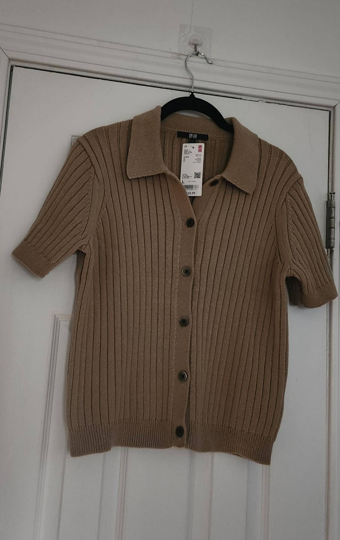 사이즈 스몰부터 라지까지 옷 특성상 입을수 있어요.완전 새옷입니다. 차분한 카멜색이라 코디하기 좋은 컬러예요.사진보다 약간 밝아요.