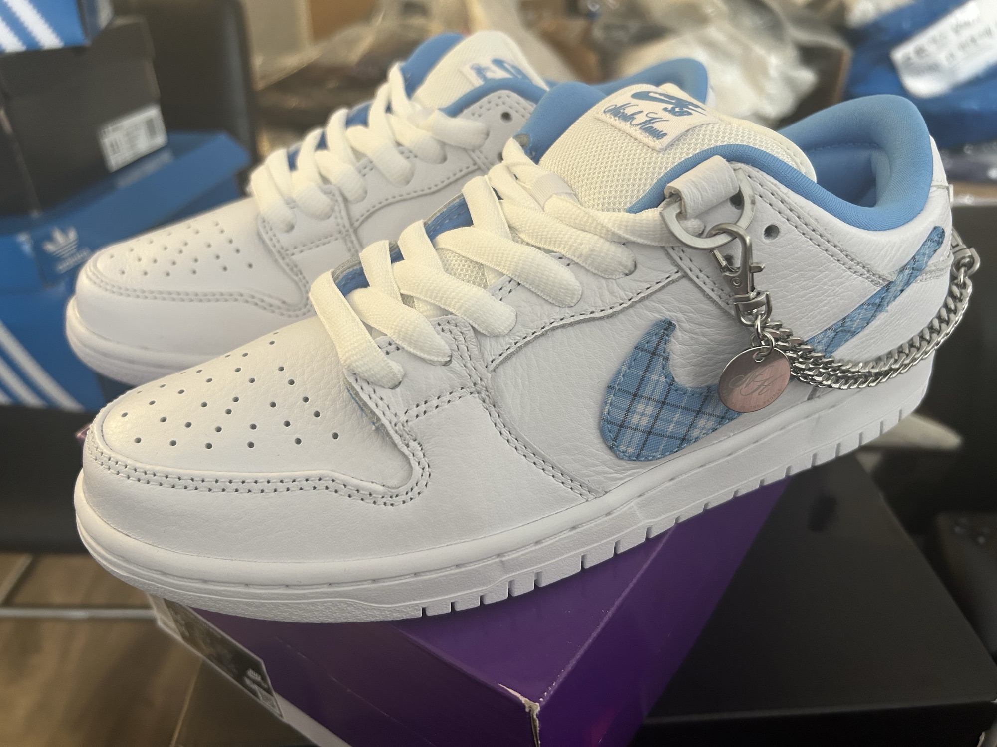 나이키 x 니콜 하우스 SB 덩크 로우 프로 화이트 앤 유니버시티 블루 정품 새상품 사이즈 265 / 8.5 주소 3029 leeward ave