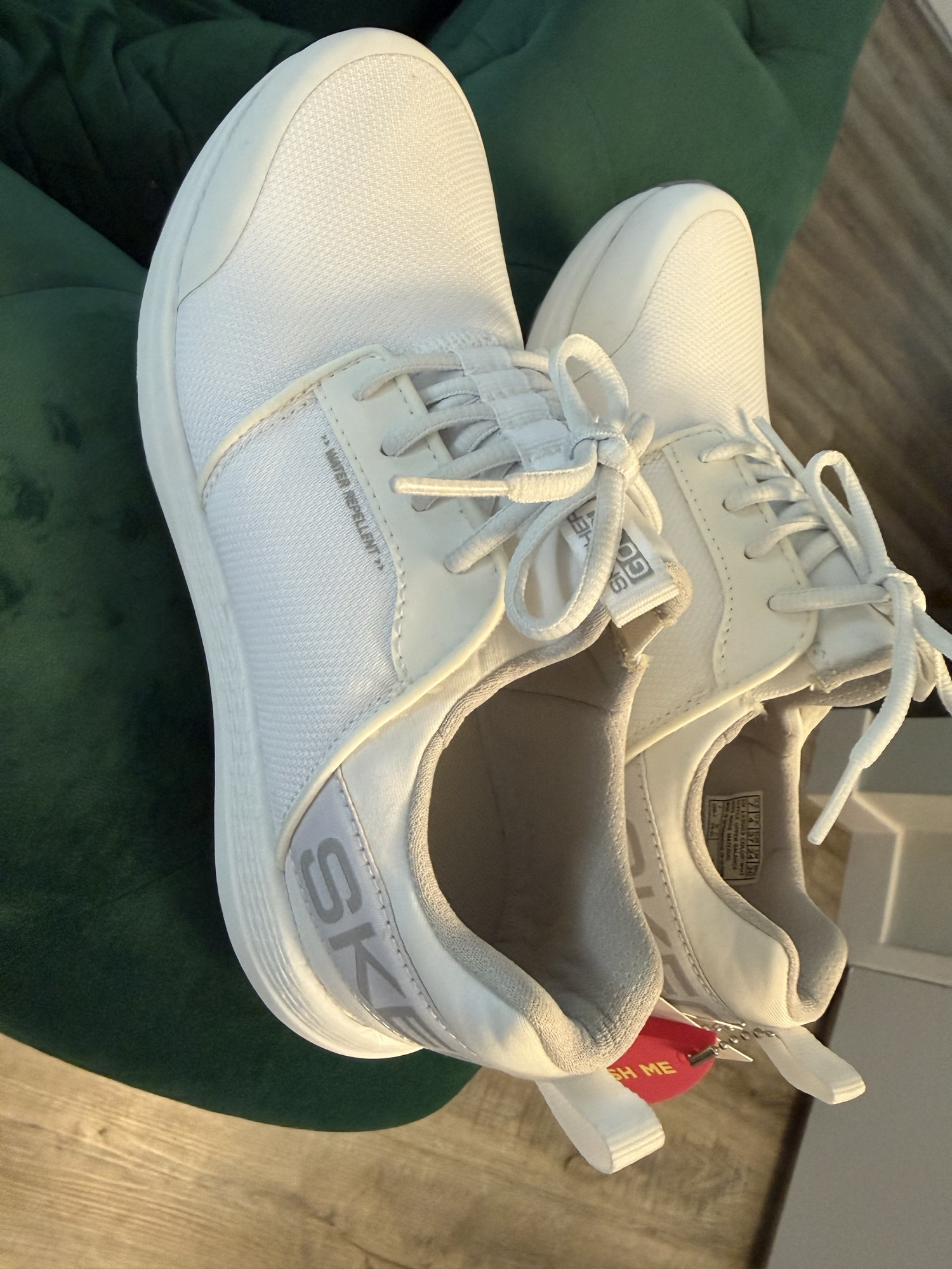 여성 골프화 사이즈 7 , 상표가 그대로 있는 새 상품입니다. 아주 가볍고 먼지가 타지않게 코팅되어있어서 더러워져도 쉽게 닦아낼수 있는 소재입니다. 정말 가벼워서 오래걷고 운동하셔도 발이 피로하지 않습니다 .