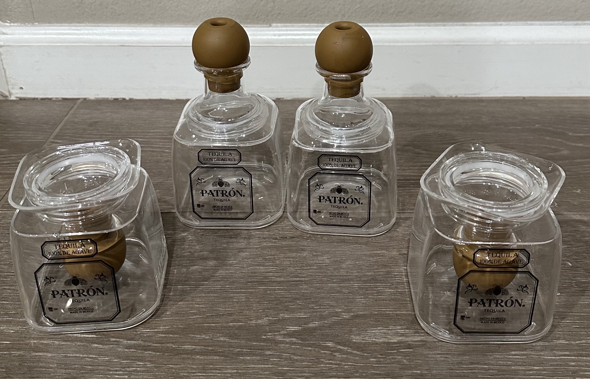 파트론 스타일의 재사용 가능한 칵테일 컵 4개 세트입니다. 플라스틱 재질이라 가볍고 파티용이나 인테리어용으로 좋습니다. • 총 4개 세트 • 플라스틱 재질 (유리 아님) • 깨끗한 상태 (빨대를 꽂아서 마시는용기) • 파티용 / 홈바 / 장식용 추천