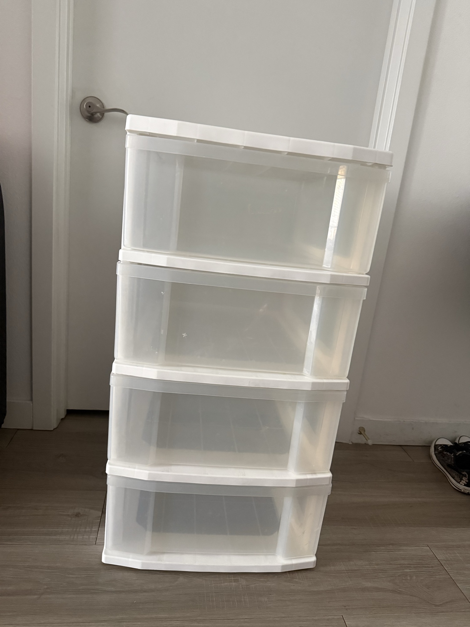 17“x21”x32” 플라스틱 사단 서랍형 정리함 약감의 손상 있어요. 쓰시는데는 문제 없어요. 사이즈 큽니다.