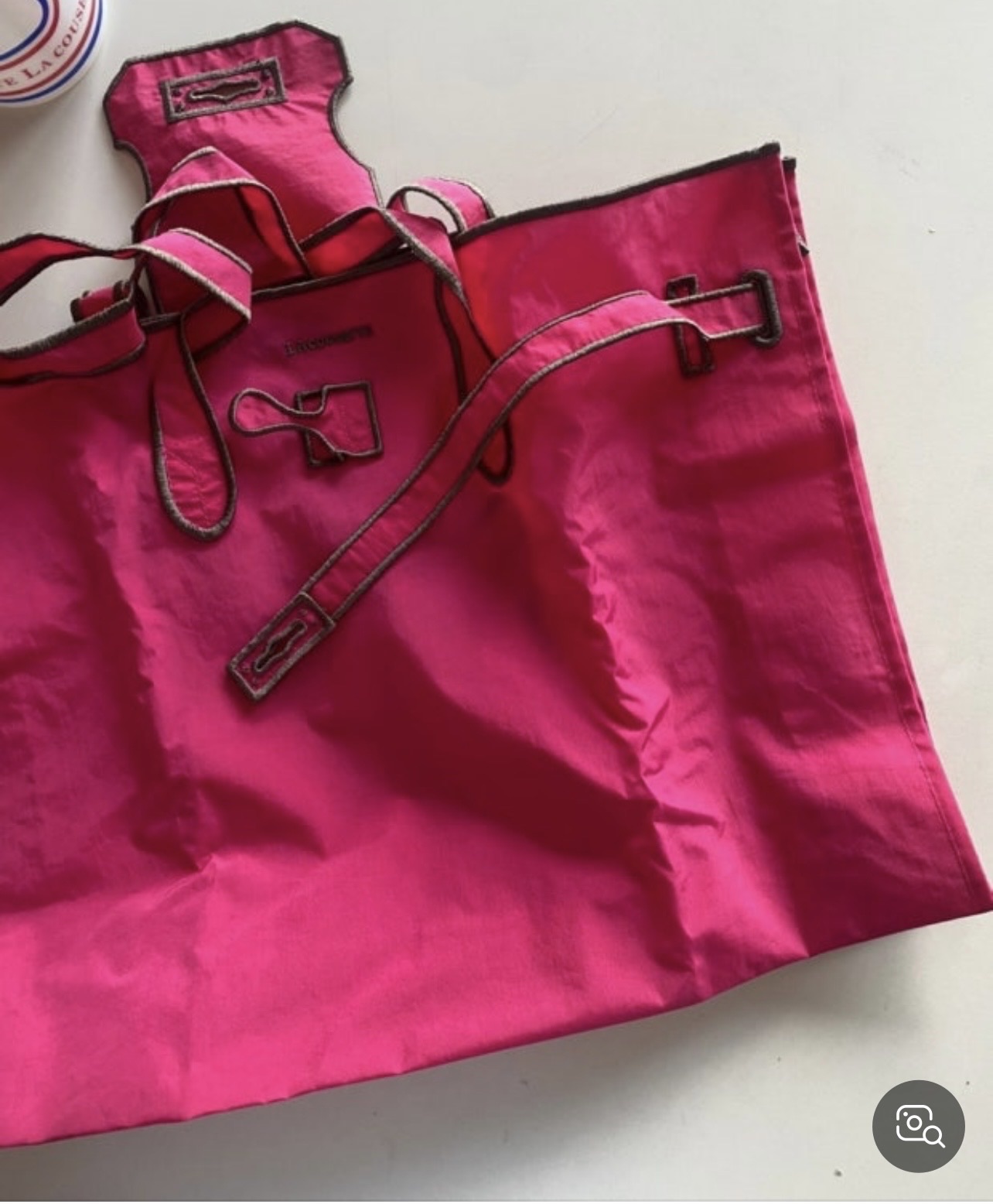 최근 한국에서 구매해 미국으로 배송받았어요 사이즈는 라지사이즈이고 생활방수되는 가벼운 재질이라 여행가서도 바닷가가서도 평상시에도 휘뜌루마뚜루 손이가는 가방이라 생각해요 실측사이즈 참고해주세요 라지사이즈입니다 색상은 핫핑크색상이에요~