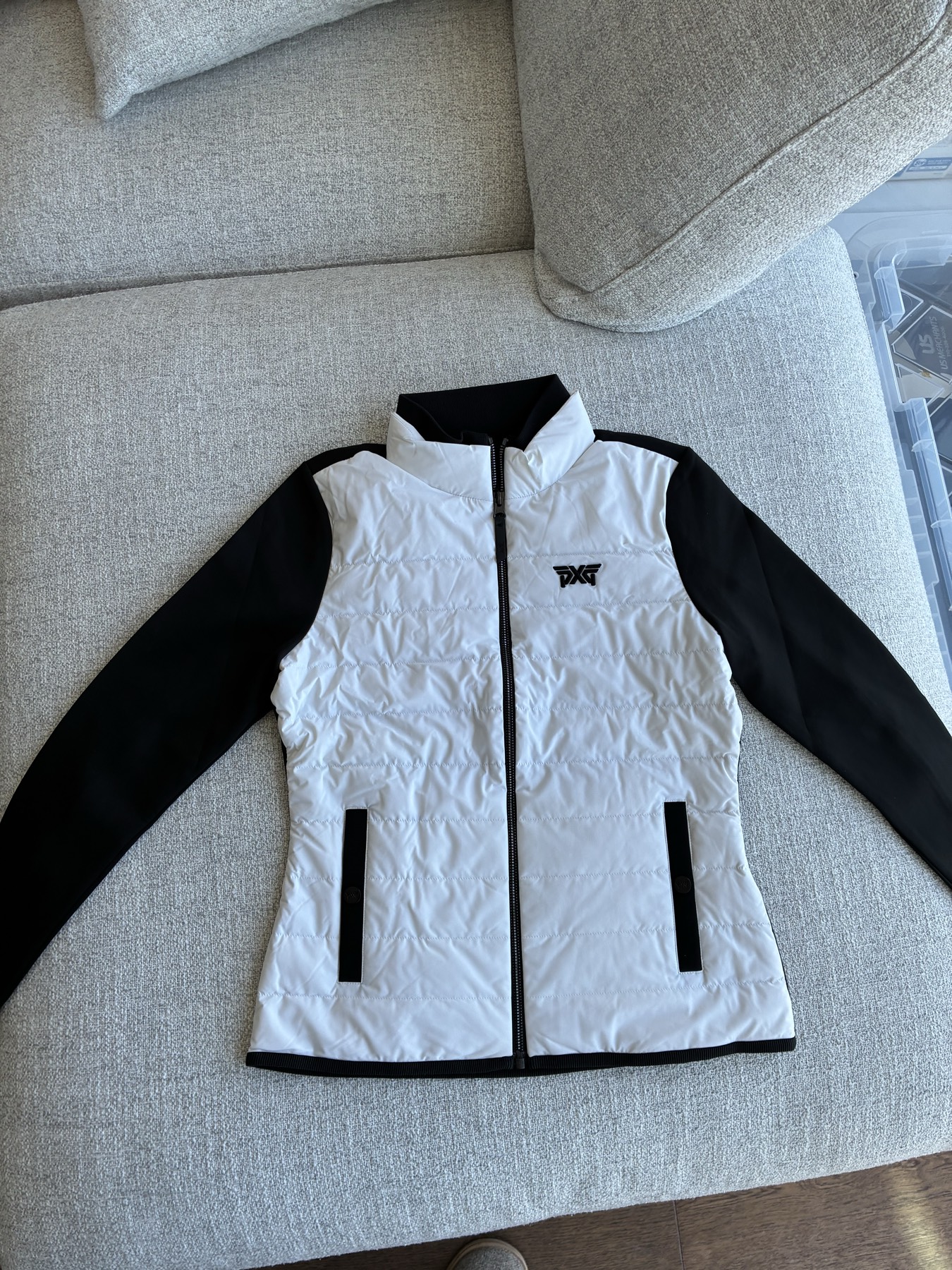 PXG 골프 여성 라이트 다운 점퍼 입니다. 사이즈: 90 (미국 사이즈 여성 XS 에서 S 사이) 신세계백화점 강남점에서 699,000원 (달러로 약 $495) 주고 구매했습니다. 한번도 안 입은 택채 새상품입니다. 최고급 프리미엄 헝가리 구스다운 소재라 가볍고 보온성도 좋습니다. 한여름 제외하고 쌀쌀할때 입기 좋습니다. 한국 PXG 제품이라 깔끔하고 모던한 디자인입니다. 미국 제품들이랑 비교했을때 디자인이나 핏 모두 월등히 좋습니다. 새상품이지만 빠른 처분을 위해 구매가 대비 40% 할인해서 판매합니다. la koreatown 픽업 only. 이 옷이랑 세트로 나온 남성 옷도 같이 판매 중입니다. 같이 구매하시면 조금 더 할인 해드립니다. 상품 설명: 앞쪽엔 구스다운 충전재를 활용하여 보온성 강화 소매와 등쪽엔 신축성이 우수한 기모 트리코트 원단을 매치하여 활동성은 극대화하면서 보온력을 구조적으로 높임