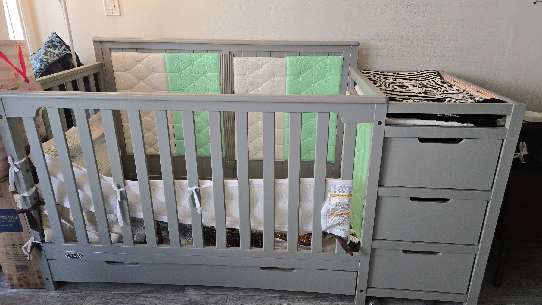 영아 부터 5세까지 사용가능하며. 매트릭스가 없읍니다 . 4개의 빼랍에 사이드에는 애기용품도 넣을수도 있고 기저귀도 갈아줄수 있는 테이블도 있읍니다.기저기 가방도 포함해서 드릴게요