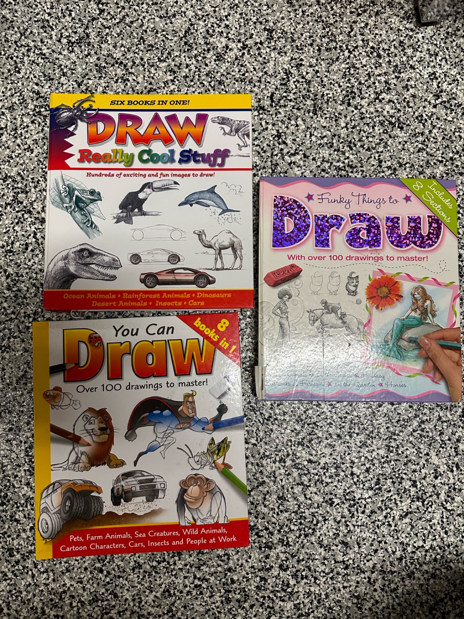아이들이나 학생들이 기본으로 그림을 그릴수 있도록 설명하고 샘플로 보여주는 책 (3권) 판매합니다. 상태는 깨끗합니다 인어공주 그려있는 책 표지 구석에 약간 찢어진 정도 입니다. 반품 환불 안됩니다.