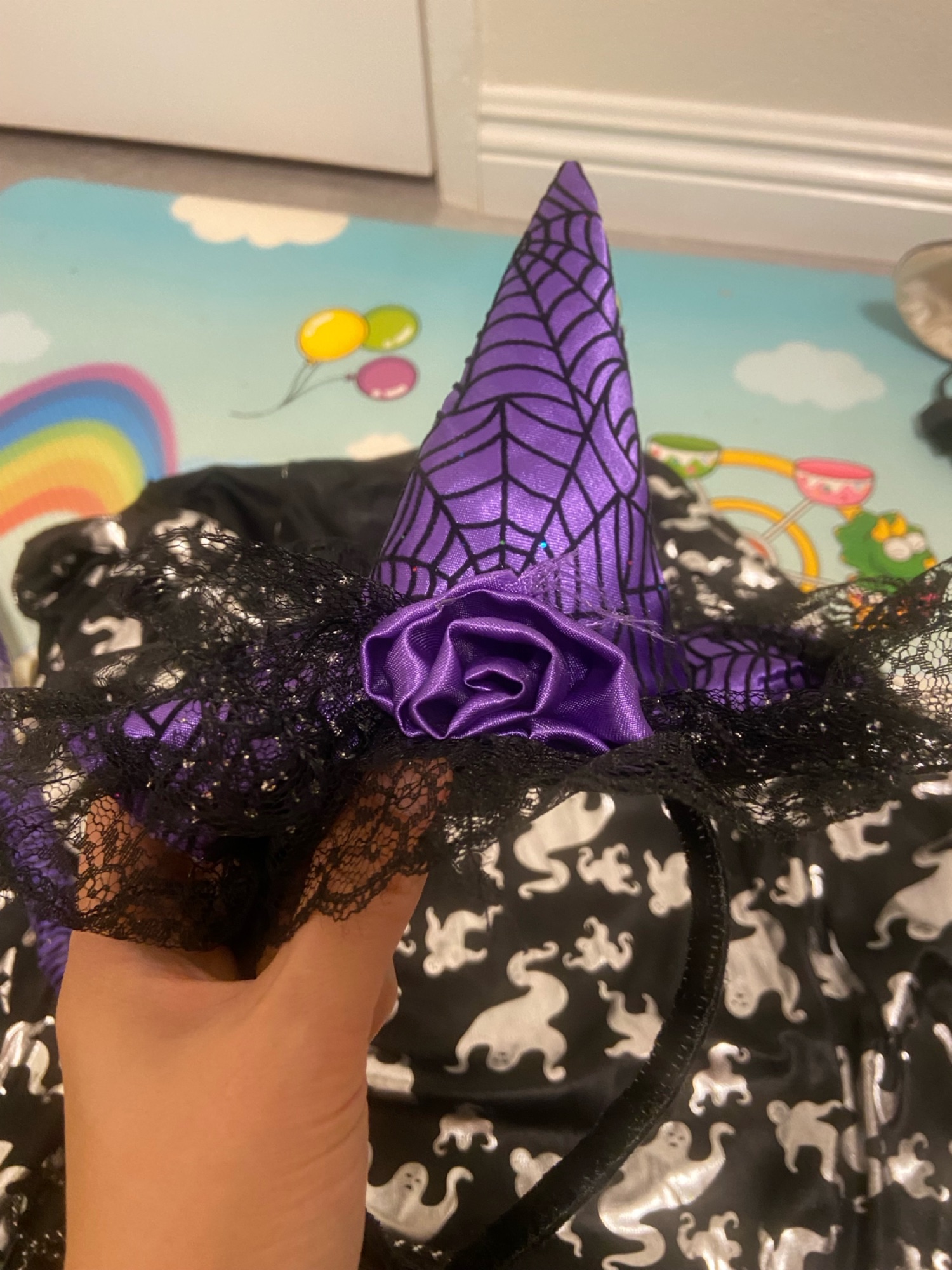 마녀모자헤어밴드, 마녀 빗자루, 망또 일괄 $20 얼룩지거나 사용감은 없으나 접혀서 보관하여 좀 눌려 있어요 다시 피시면 됩니다 Size:4-6 years