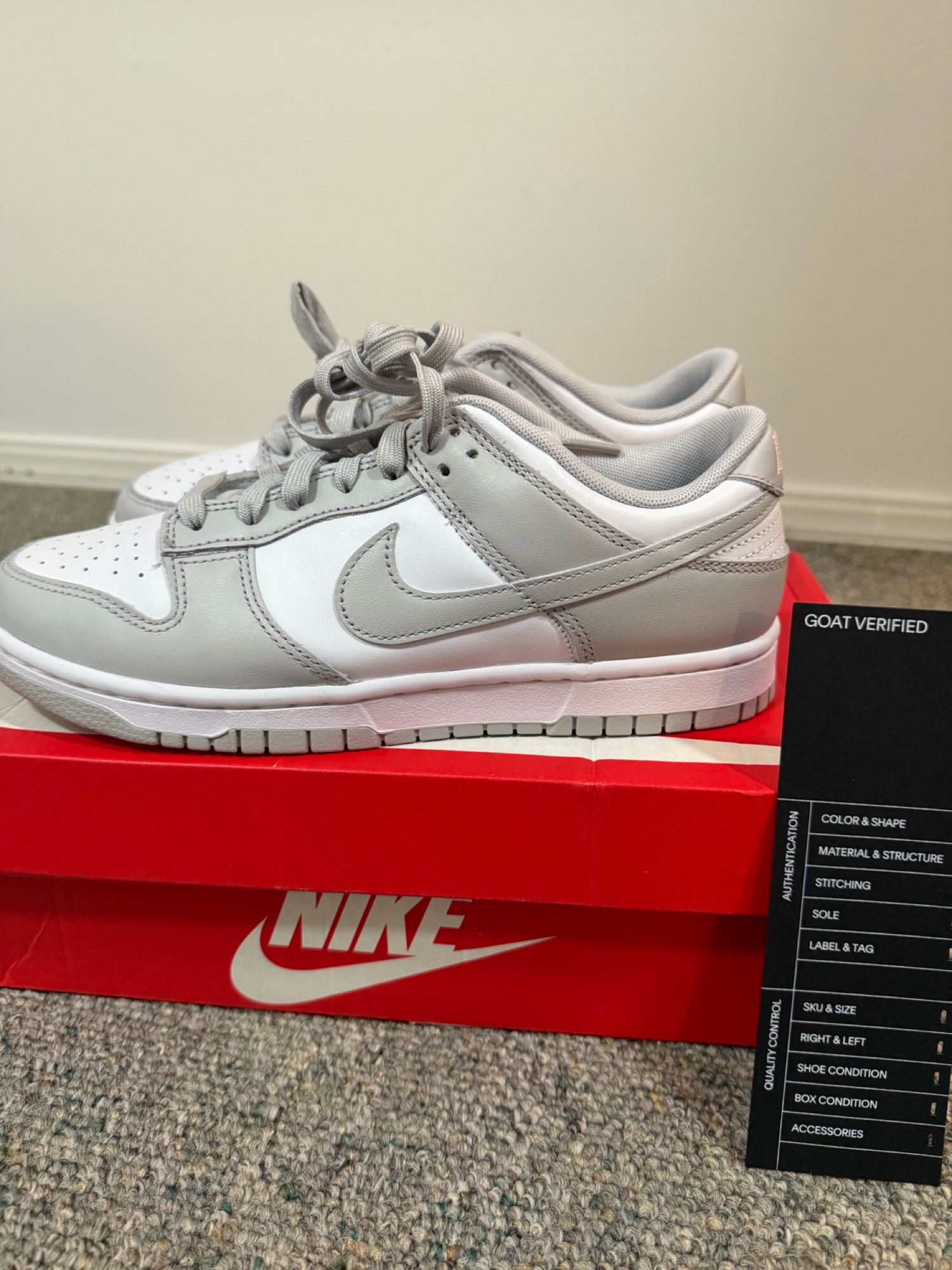 nike dunk low retro white grey fog 제품으로 한번도 신지 않은 새제품입니다. 사이즈 미스로 저렴하게 판매합니다. 사이즈는 8 (260cm) 입니다.