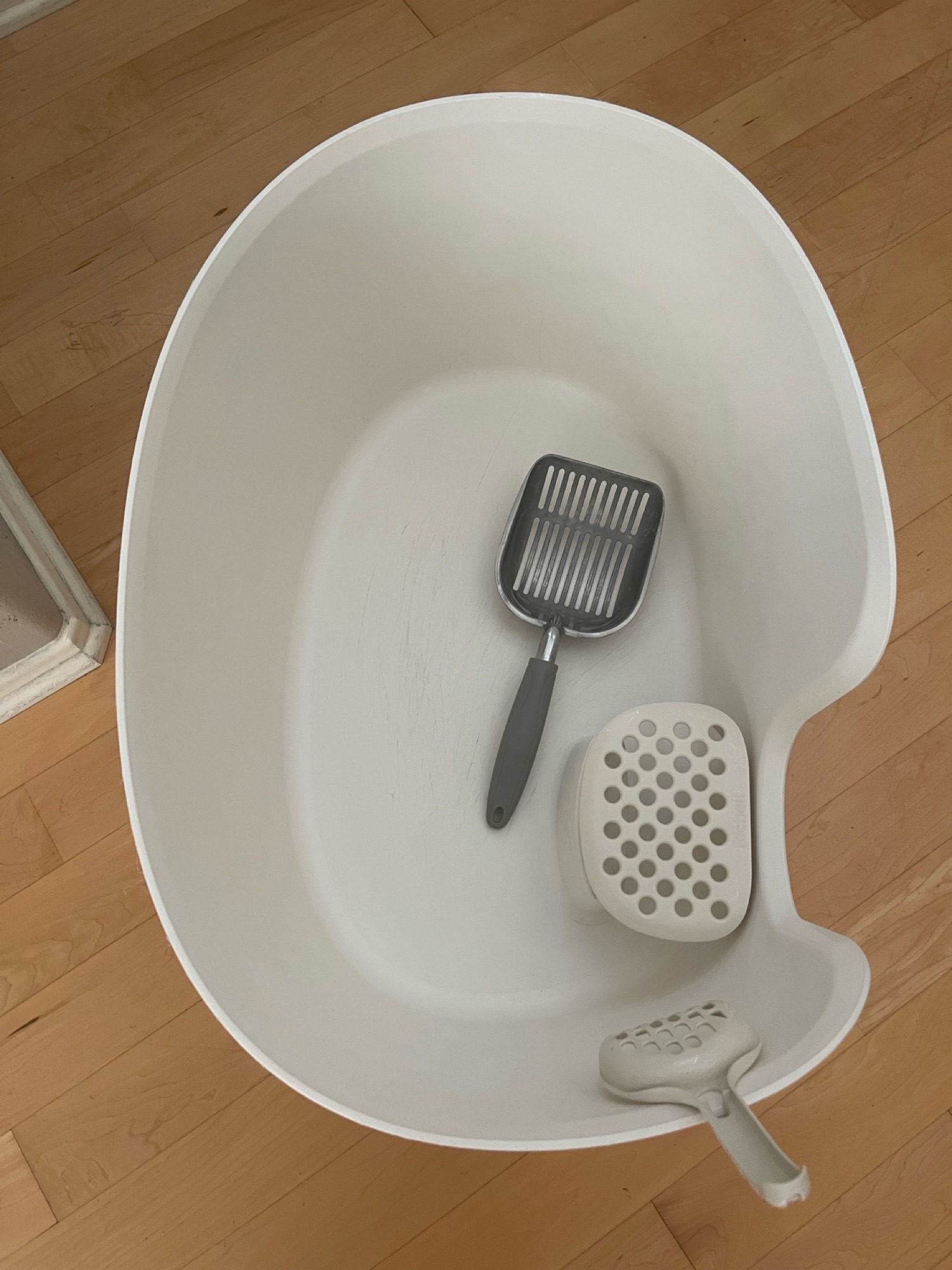 🐱 대형 고양이 화장실 세트 판매 (XL 사이즈) ✔ 사용 기간: 약 4개월 ✔ 상태: 전체적으로 깨끗 / 사용감 거의 없음 ✔ 사이즈: XS Large (굉장히 큰 사이즈) → 큰 고양이, 다묘가정에도 충분한 넉넉한 사이즈 ⸻ 📦 포함 구성 • 대형 고양이 화장실 본체 (XL) • 작은 플라스틱 스쿱 (기본 포함) • 대형 스테인리스 스쿱 → 따로 구매한 고급 스테인리스 스쿱이며 같이 드립니다 • 카펫/러그 위 동물 털 제거 스크래퍼 → 카펫에 붙은 고양이 털을 싹싹 긁어내면 정말 잘 제거됩니다 • 캣닢 (Catnip) 함께 드림 ⸻ ✨ 장점 • 깊고 큰 구조라 모래 튐 적음 • 큰 고양이도 편하게 사용 가능 • 스테인리스 스쿱 포함이라 위생적이고 내구성 좋음 • 털 제거 도구까지 포함 → 실사용에 매우 유용 ⸻ 📌 참고사항 • 중고 특성상 미세한 사용감은 있을 수 있으나, 세척 후 보관하여 전체적으로 매우 깔끔한 상태입니다. • 세트로만 판매