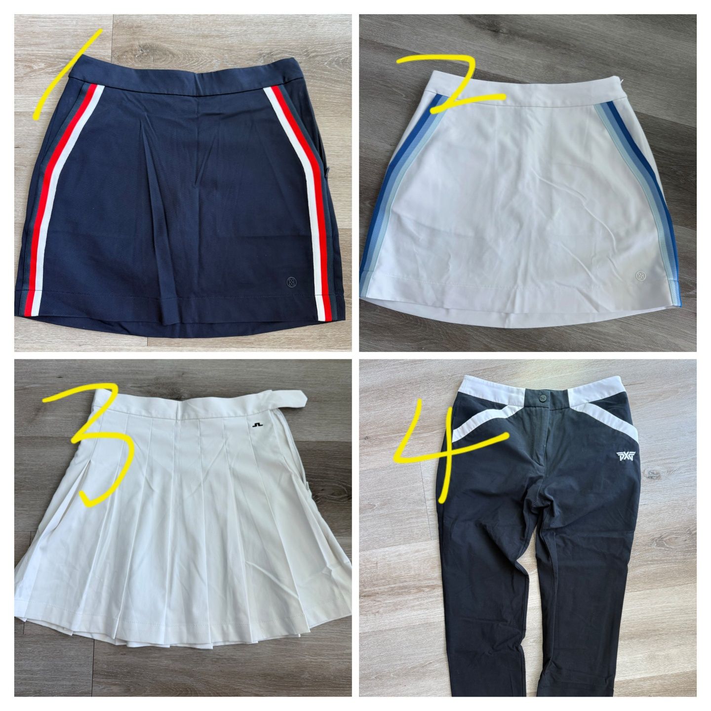 스커트는 세탁만하고 한번도 안 입은 제품인데 너무 타잇해서 판매합니다. (26입으시거나 날씬 27정도) 1. 지포어 원가 $ 165 size 2 판매가 $ 80 2. 지포어 원가 $ 165 size 2 판매가 $ 80 3. 제이린드버그 $160 size S 판매가 $ 70 PXG 바지는 착용했던 제품이라 $ 30에 판매합니다. Size 27 핏 정말 예쁘고 심플하면서도 포인트가 있어서 입으면 너무 예뻐요. 엘에이 직거래 선호하지만 쉽 가능합니다.