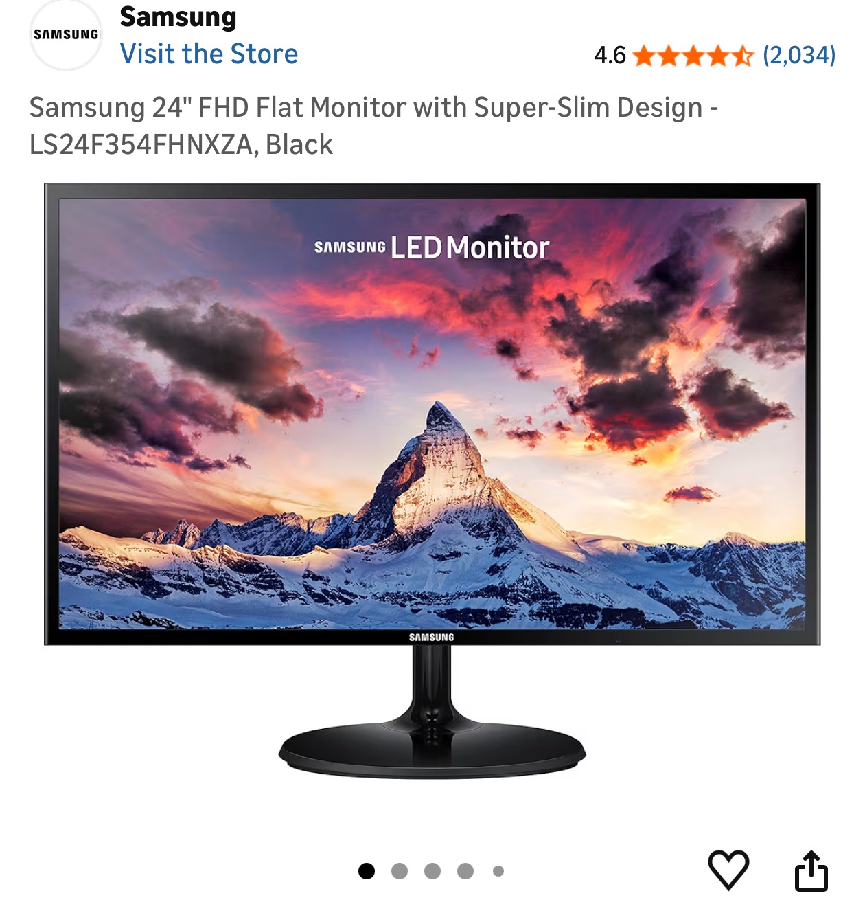 삼성 24인치 모니터 팝니다! 상태 좋고, 급히 move-out 하게 돼서 필요하신 분께 싼 값에 드립니다!!