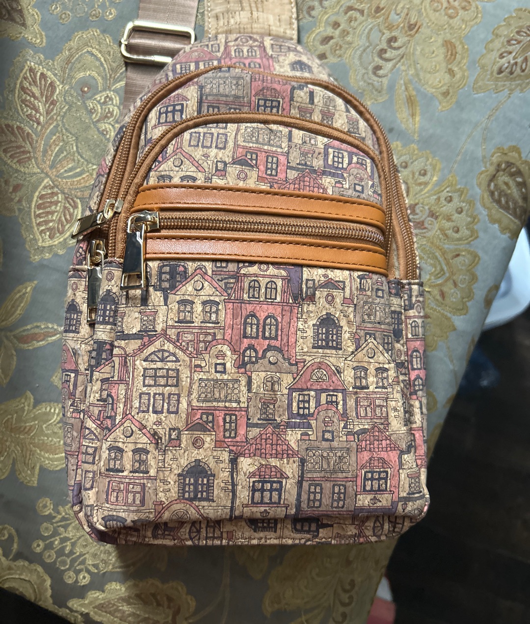 스페인 여행가서 구입했어요 코르크 재질로 아주 가벼워요 그후로 여행을 안가서 벽에걸어만 있어요 뒤쪽에도 따로 넣을수 있어서 좋아요 앞쪽으로 이것저것 넣을수 있고 몸에 착 붙어요