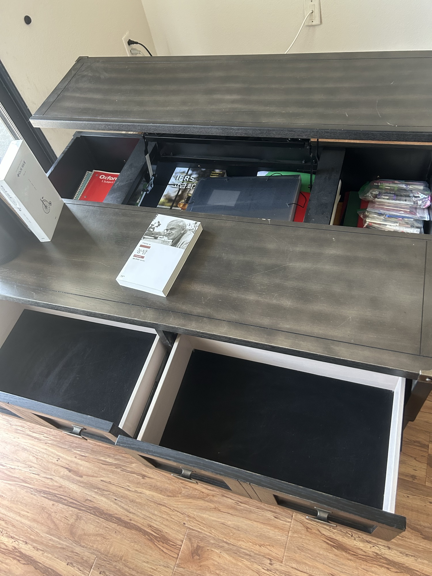원목 리프트업 수납형 테이블 (서랍+상부수납) / 커피테이블 / TV장 / 다용도 가구