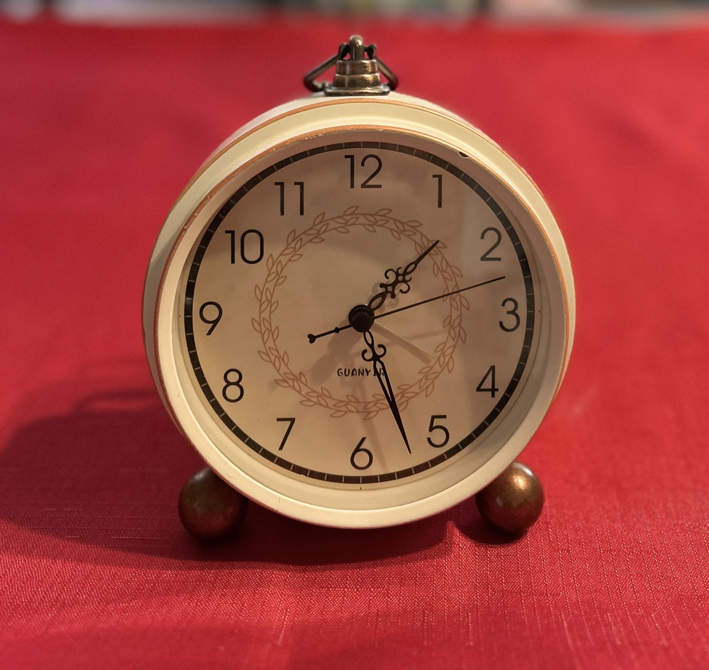 • 상태: 아마존에서 직접 구매한 제품이고, 상태 아주 깨끗합니다. (사진 참조) • 디자인: 클래식하고 로맨틱한 빈티지 디자인이라 침대 옆 협탁이나 책상 위에 인테리어 소품으로 두기 좋습니다. 로즈골드/브론즈 톤의 테두리가 고급스러워요. • 기능: 쿼츠 방식 알람 시계이며, 초침 소리가 거의 없는 저소음/무소음 스타일입니다. • 사이즈: 지름 약 5 1/4인치