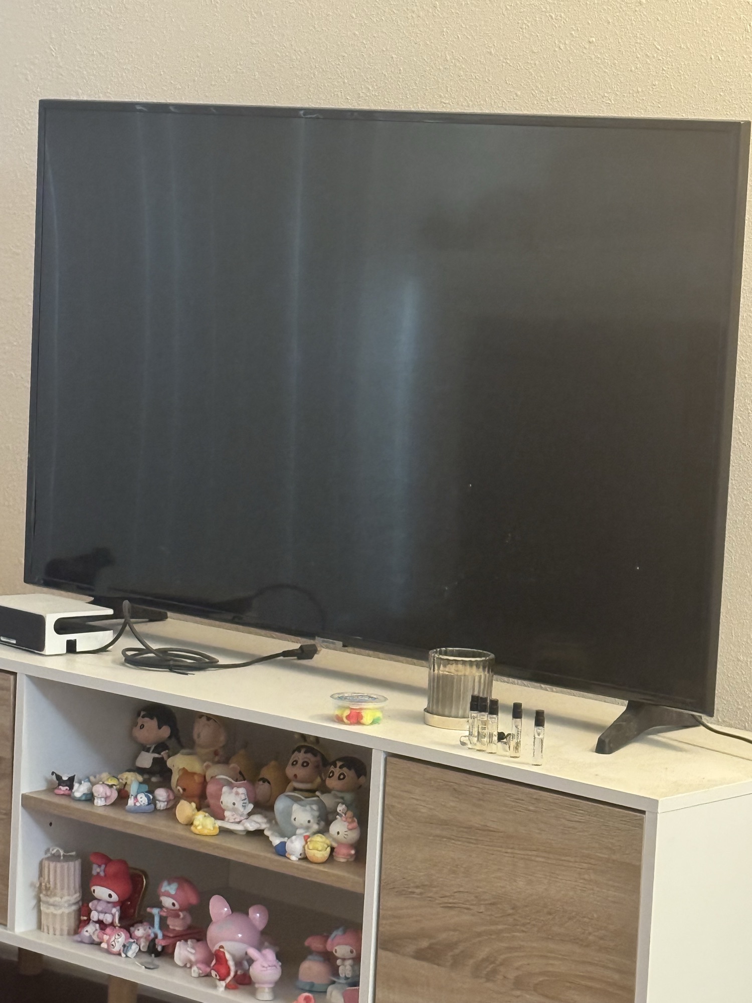사용감은 있습니다 키고 끄고 문제는 전혀 없습니다 보호 필름 아직도 붙어있구요 스크레치 있을 수 있습니다 문제 전혀 없어요! 리모콘도 같이 드리는데 교체하시는 걸 추천드려요 픽업해주세요 (그로브근처입니다)