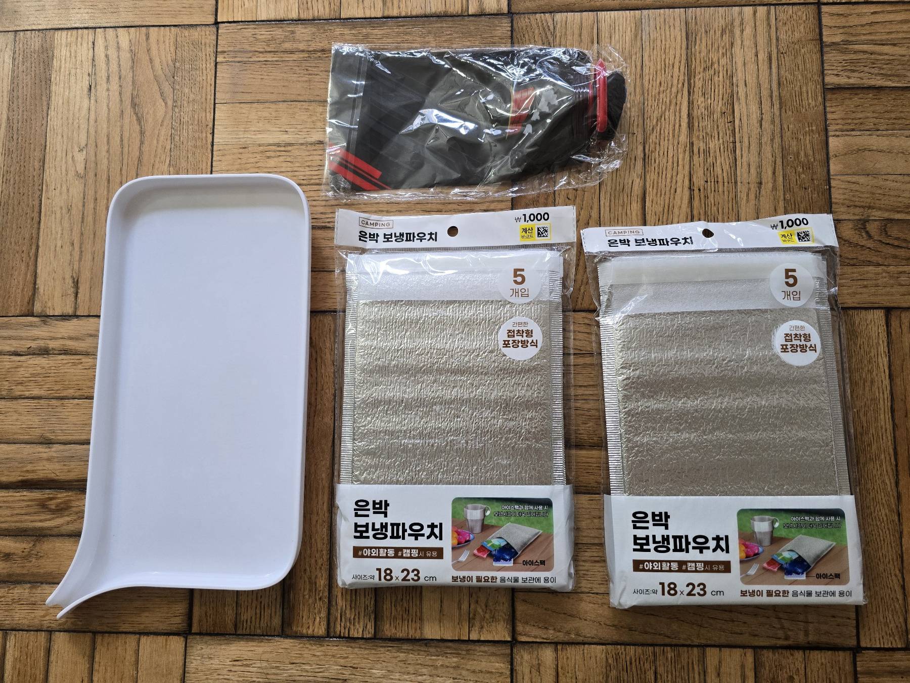 은박 보냉파우치 10개입, 싱크대에 놓기 편한 컵 물빠짐 받침, 파우치 물통 (모두 새상품) 팔아요. 파우치 물통은 산책, 등산할때 고리 걸이가 있어 편해요 Park la brea에서 거래원해요